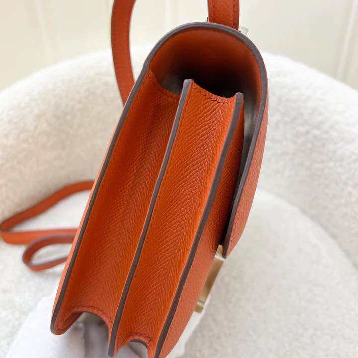 (Pre-loved) Hermes Mini Constance 18 in Terre Battue Epsom Leather and Rose Confetti Enamel Lock