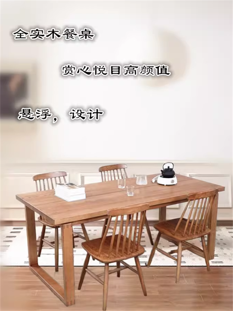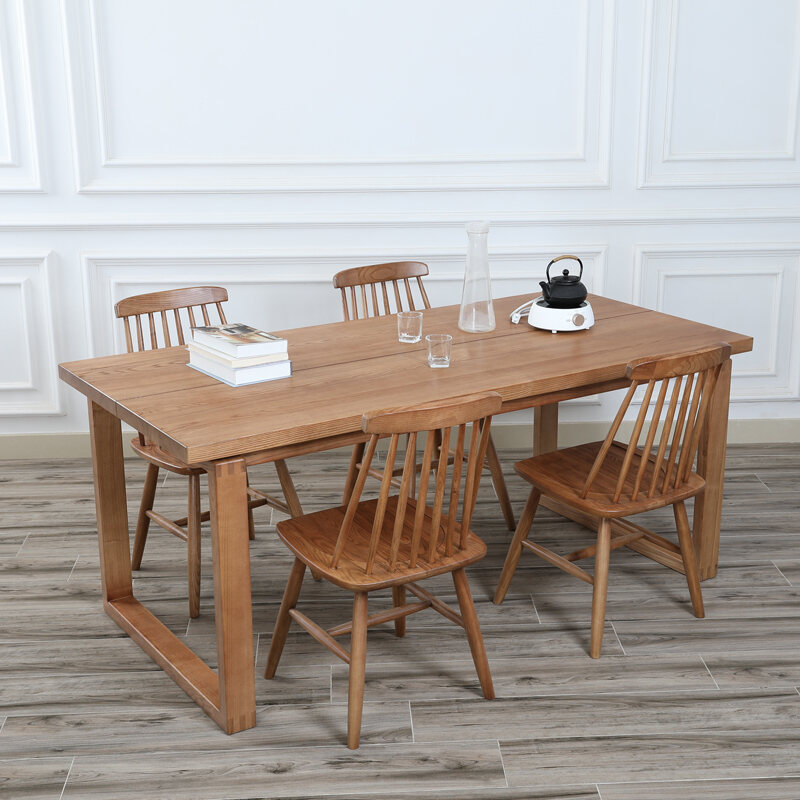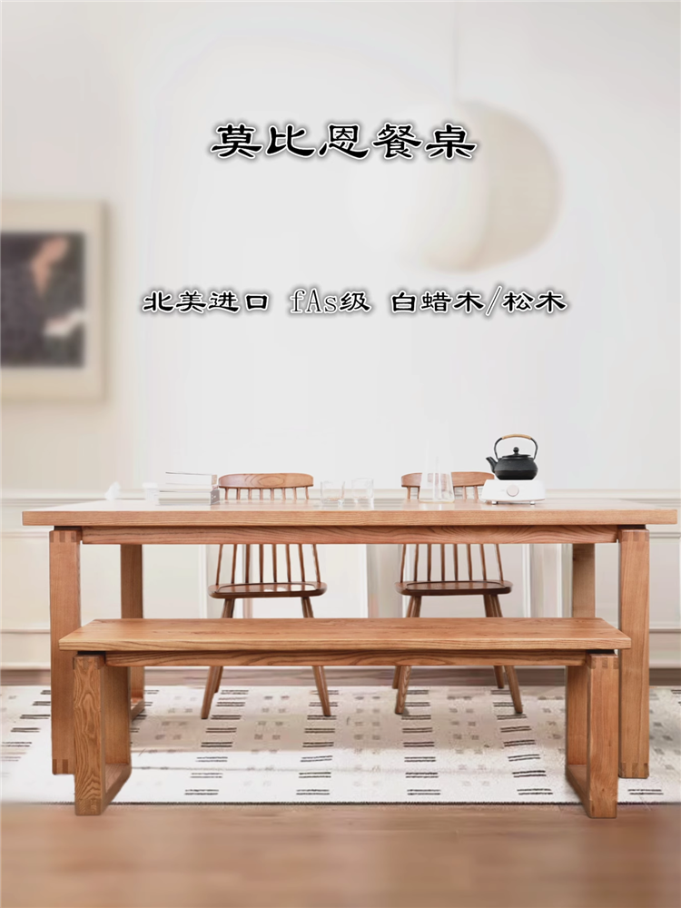 Nordic Solid Wood Dining Table Combination White Wax Simple Long Table Log Japanese Style High end Large Board Table Mobien Same Table