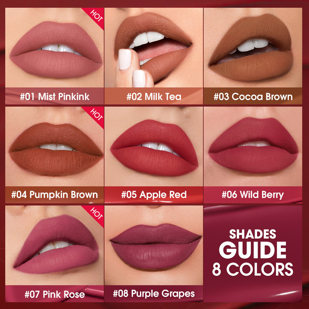 KK BEAUTY O.TWO.O Lipsticks Matte Waterproof Long Lasting Smooth Velvet Lip Gloss Non-stick Cup Lip Tint Makeup Cosmetics