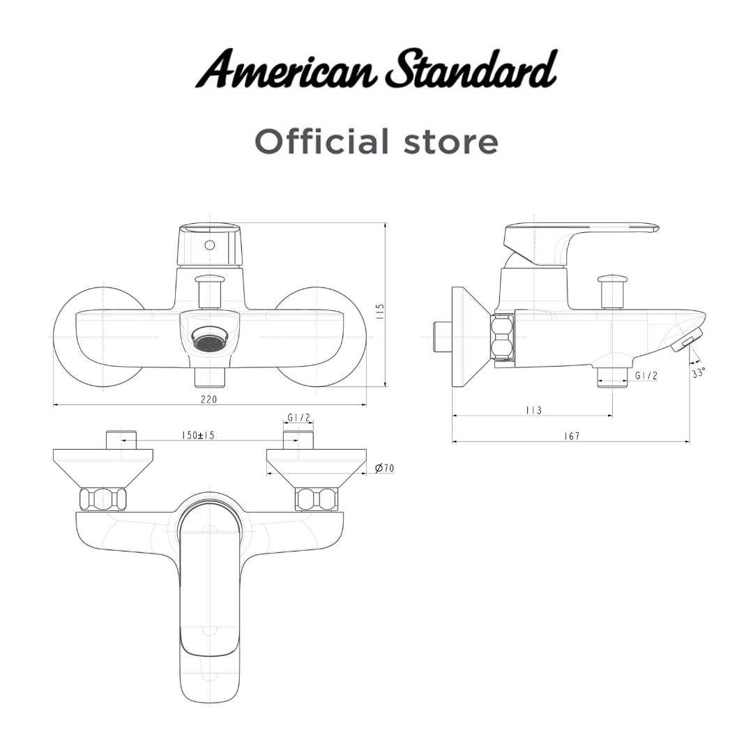 American Standard Loven Exposed Bath & Shower Mixer