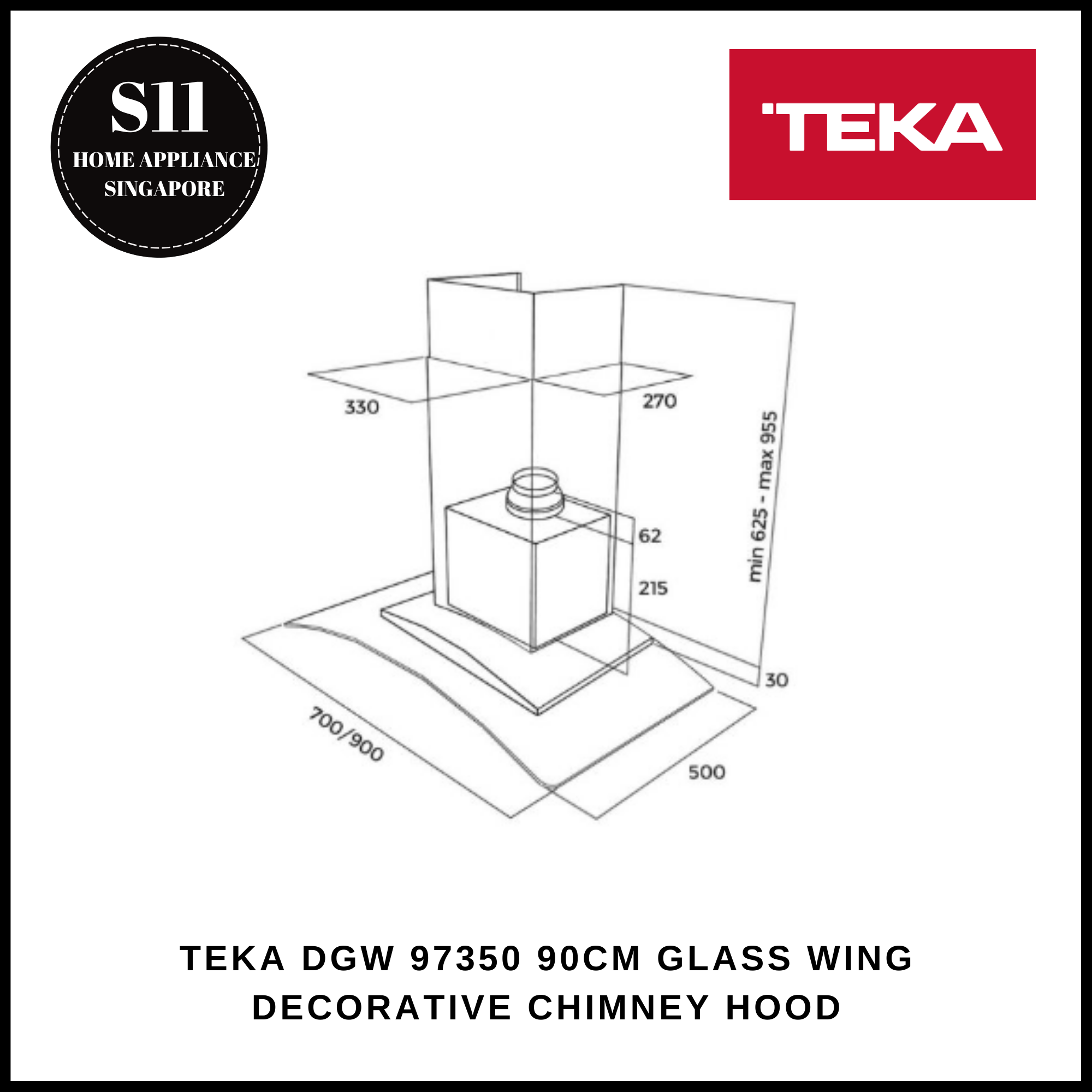TEKA DGW 97350 90CM GLASS WING DECORATIVE CHIMNEY HOOD + 2 YEARS WARRANTY
