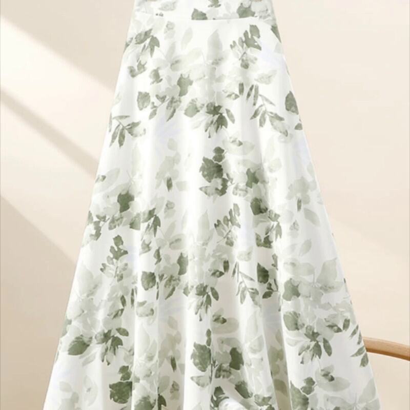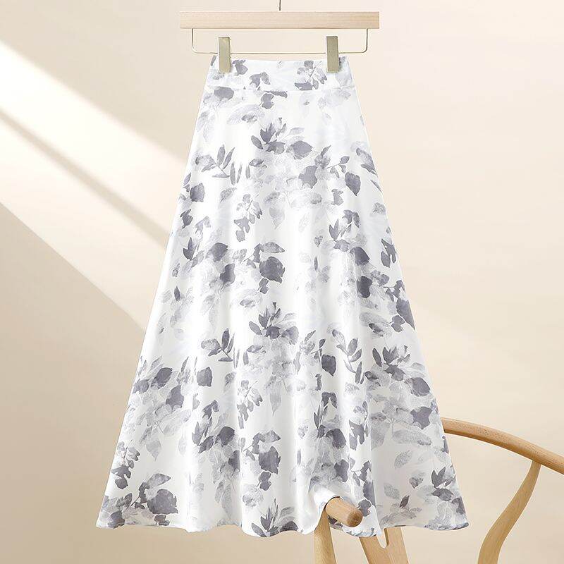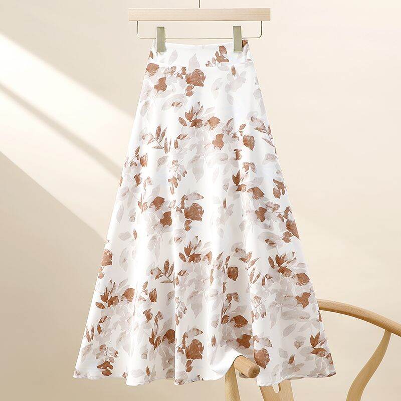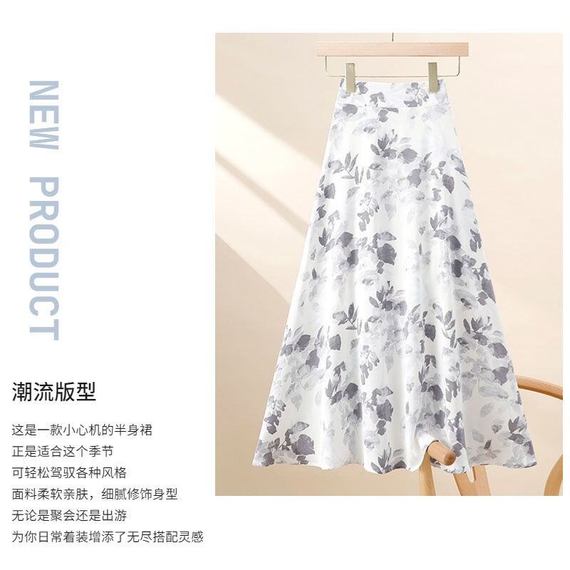 Summer K-style Easiest for Match High Waist Fat Cover Slimming Large Hem A- line Skirt French Retro Mid Length Long Length Floral Skirt