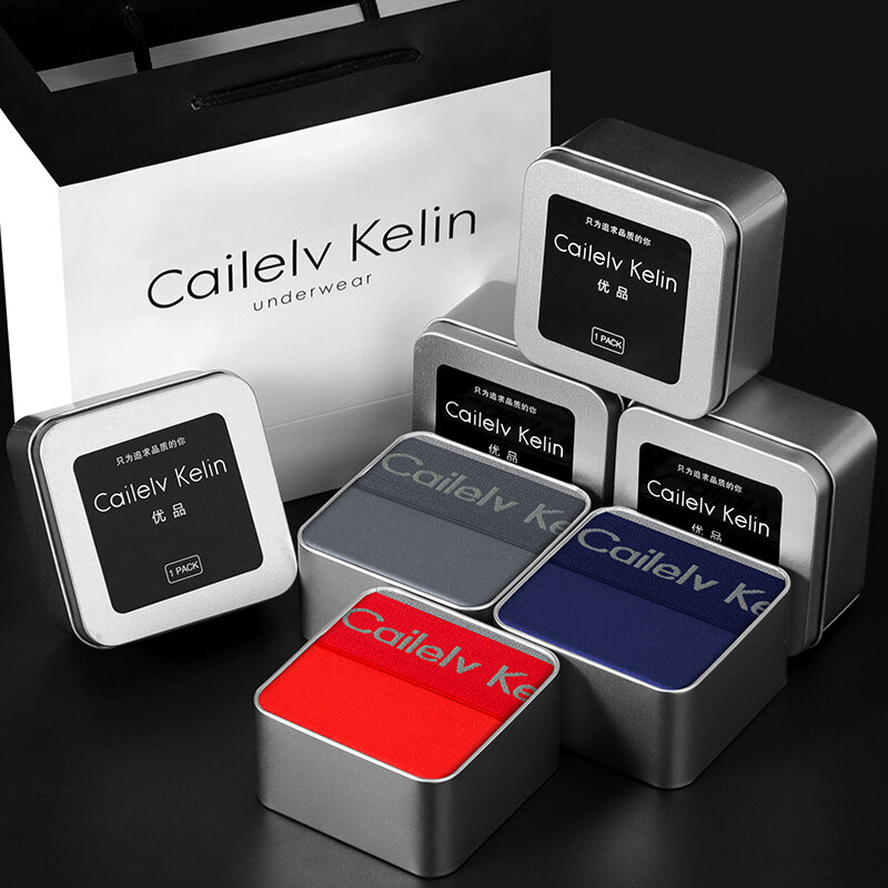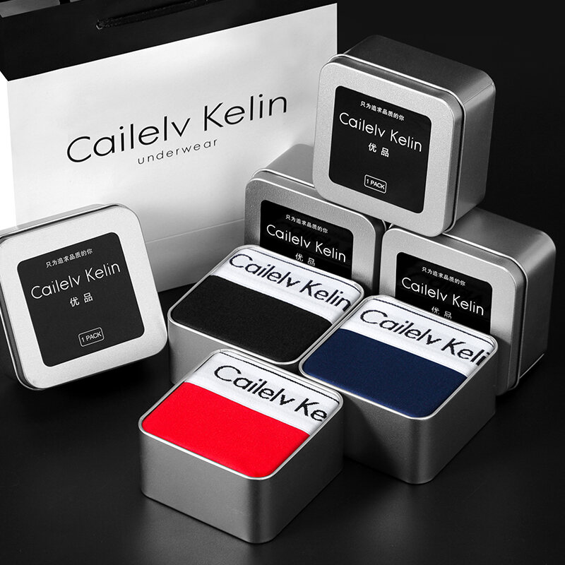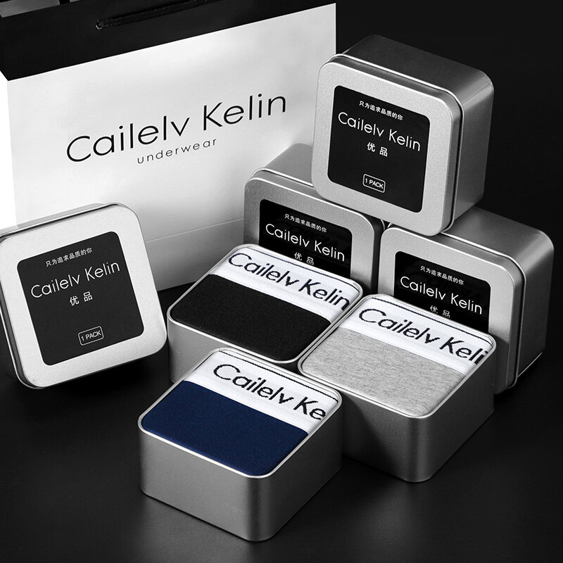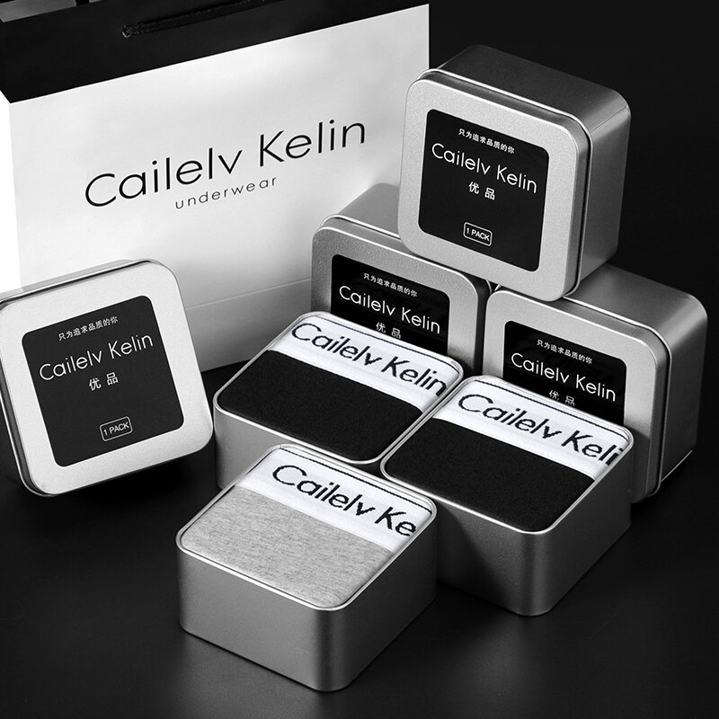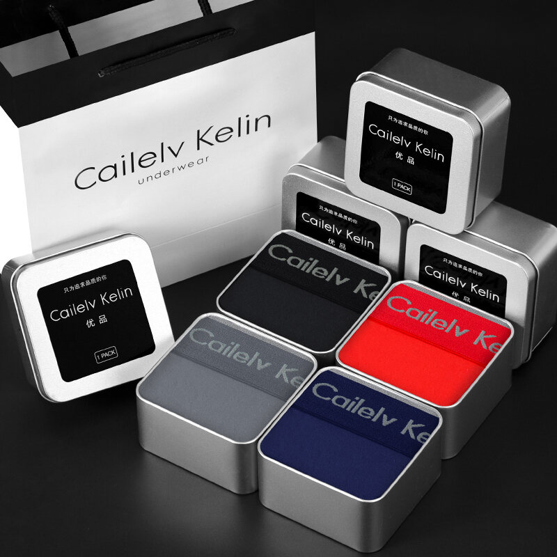 CK & JAV Men Underwear Pure Cotton Boys Style Flat Underwear Boxer Shorts Men's Sports Gift Box Magnetic Therapy Mid-Waist High Elastic