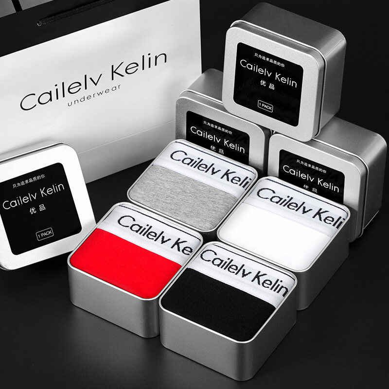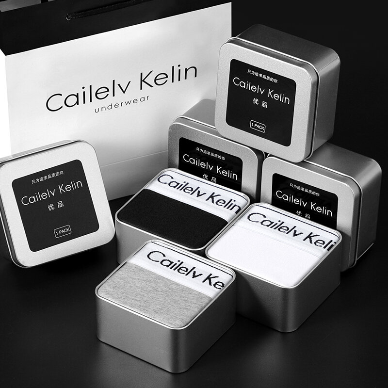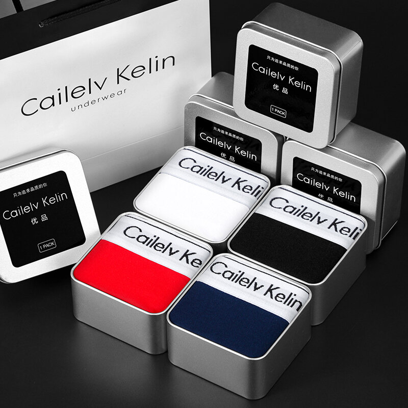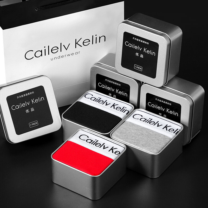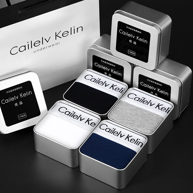 CK & JAV Men Underwear Pure Cotton Boys Style Flat Underwear Boxer Shorts Men's Sports Gift Box Magnetic Therapy Mid-Waist High Elastic