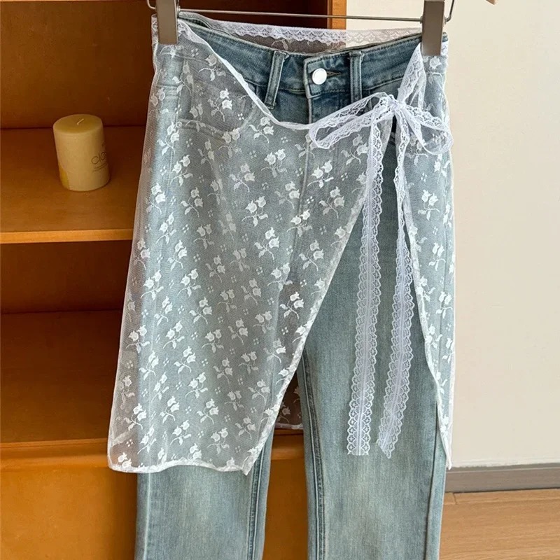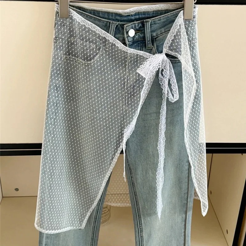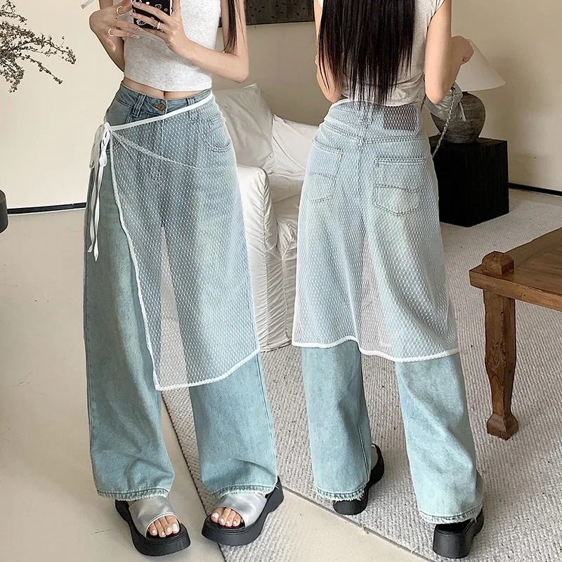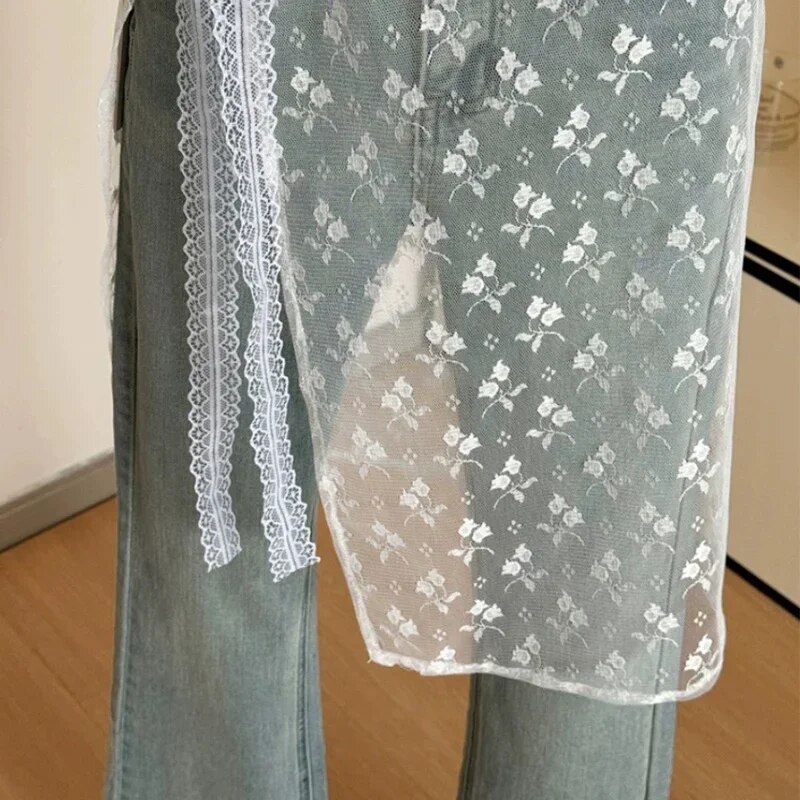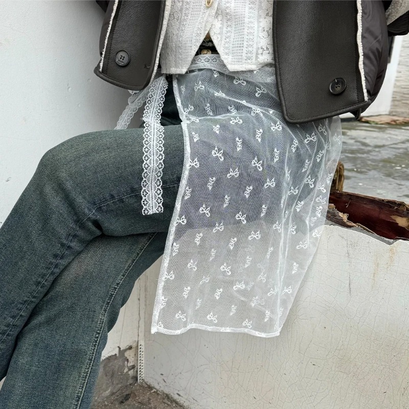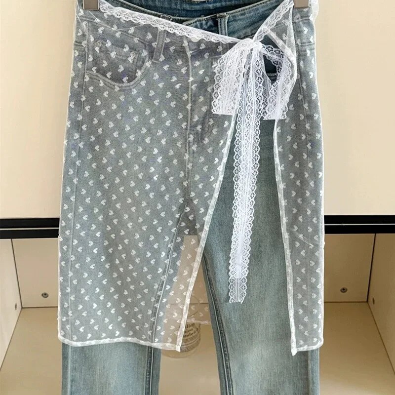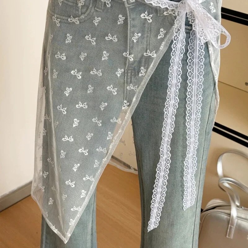 Women INS Blogger Lace Layered Gauze Skirt with Tie Up Spicy Girl Stacked Skirt Y2k Streetwear Apron Wrap Skirt Lace Up Matching Pants
