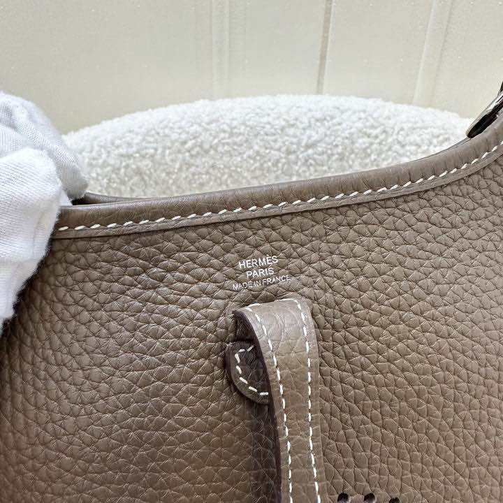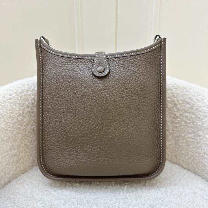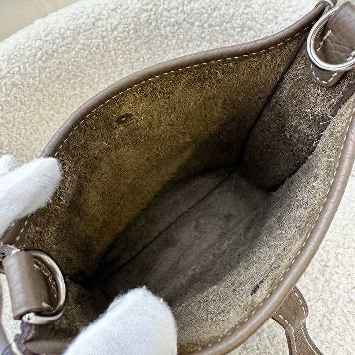 (Pre-loved) Hermes Mini Evelyne 16 TPM in Etoupe Clemence Leather with Bleu Indigo Strap and PHW