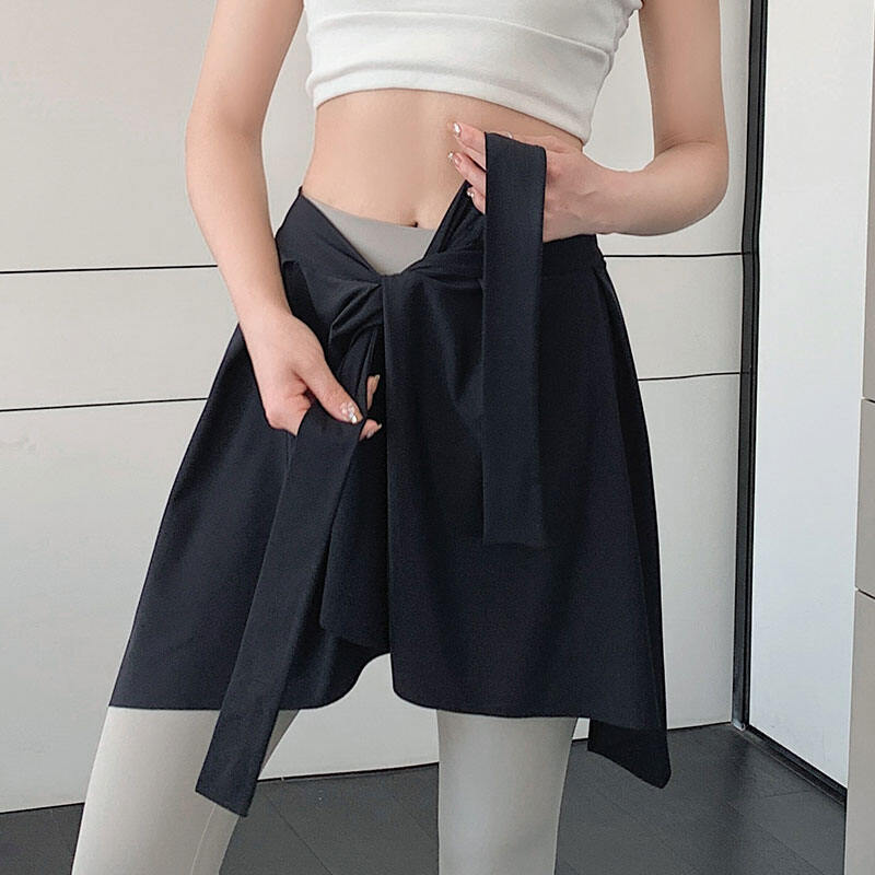 Yoga Sports Base Skirt One-Piece Thigh-Length Skirt Covering Skirt Fitness Women's Skirt Fart Curtain Anti-Wardrobe Malfunction Hip-Covering