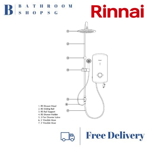 Rinnai REI-B330DP-R Crystal Series Electric Instant Water Heater with DC Pump & Exta Large Rainshower Head