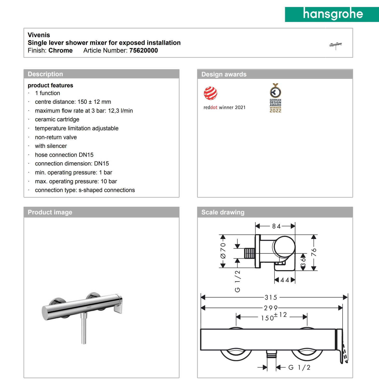 hansgrohe Vivenis Single lever shower mixer (Chrome)