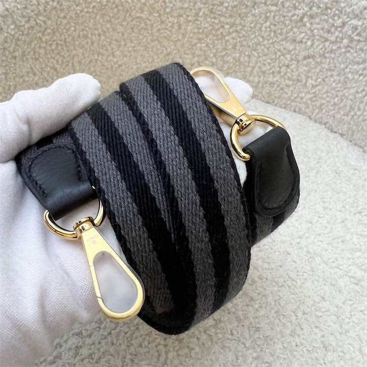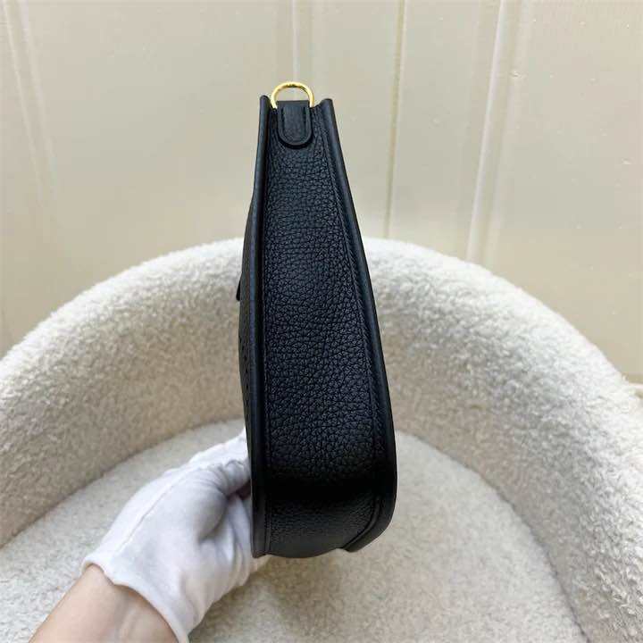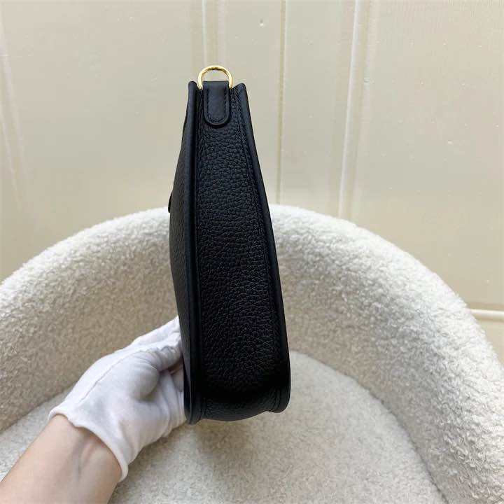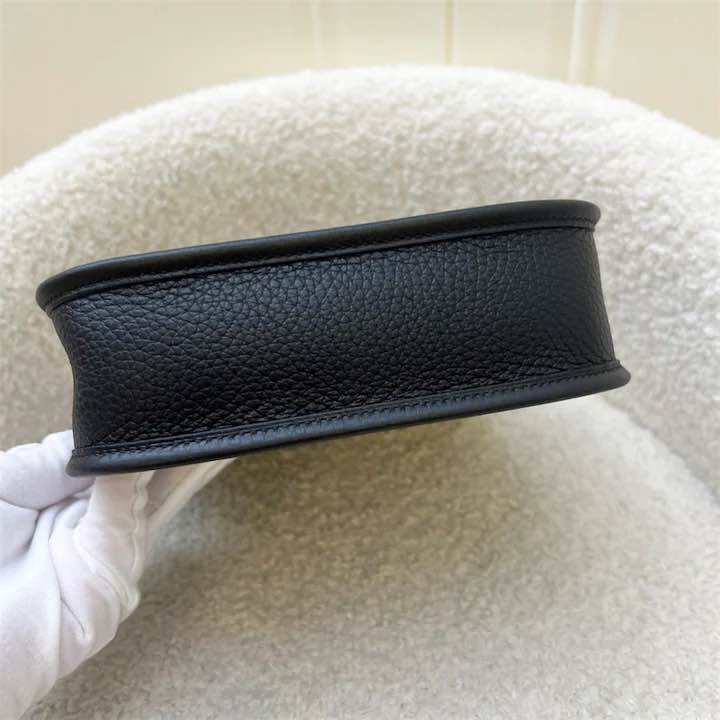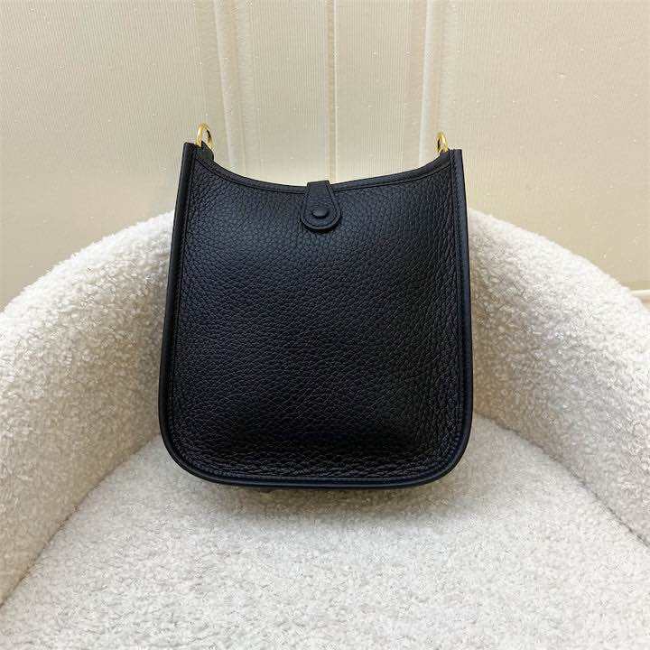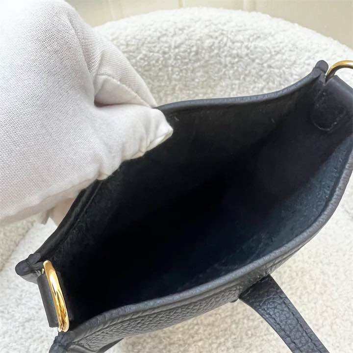 (Brand new) Hermes Mini Evelyne TPM in Noir Black Clemence Leather, Striped Strap and GHW