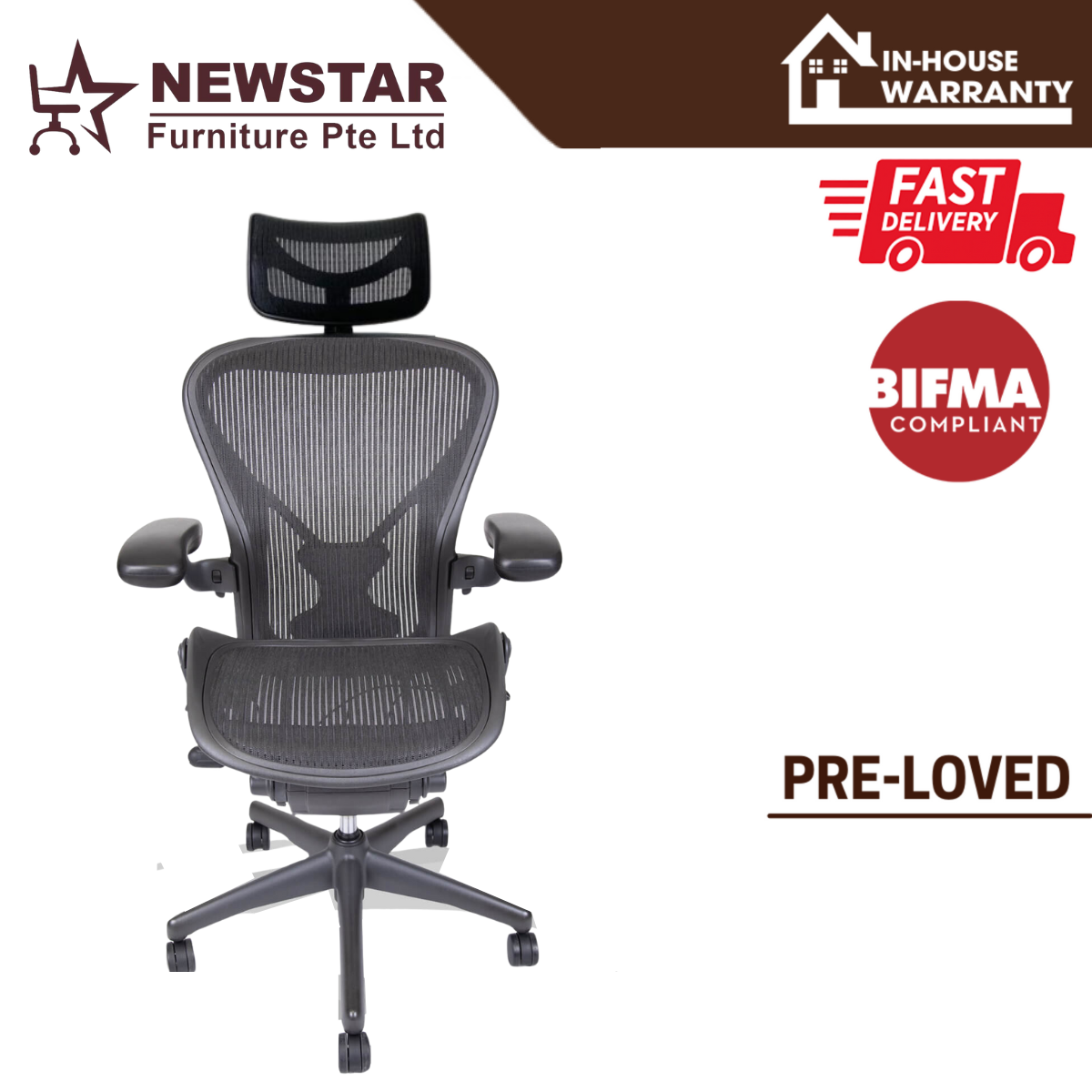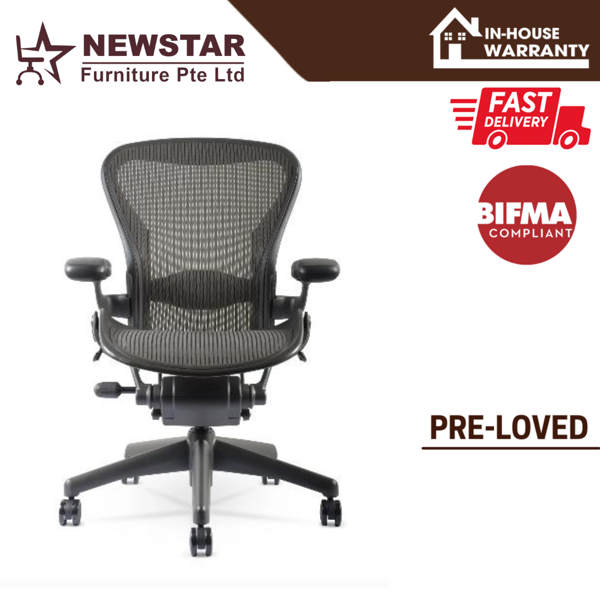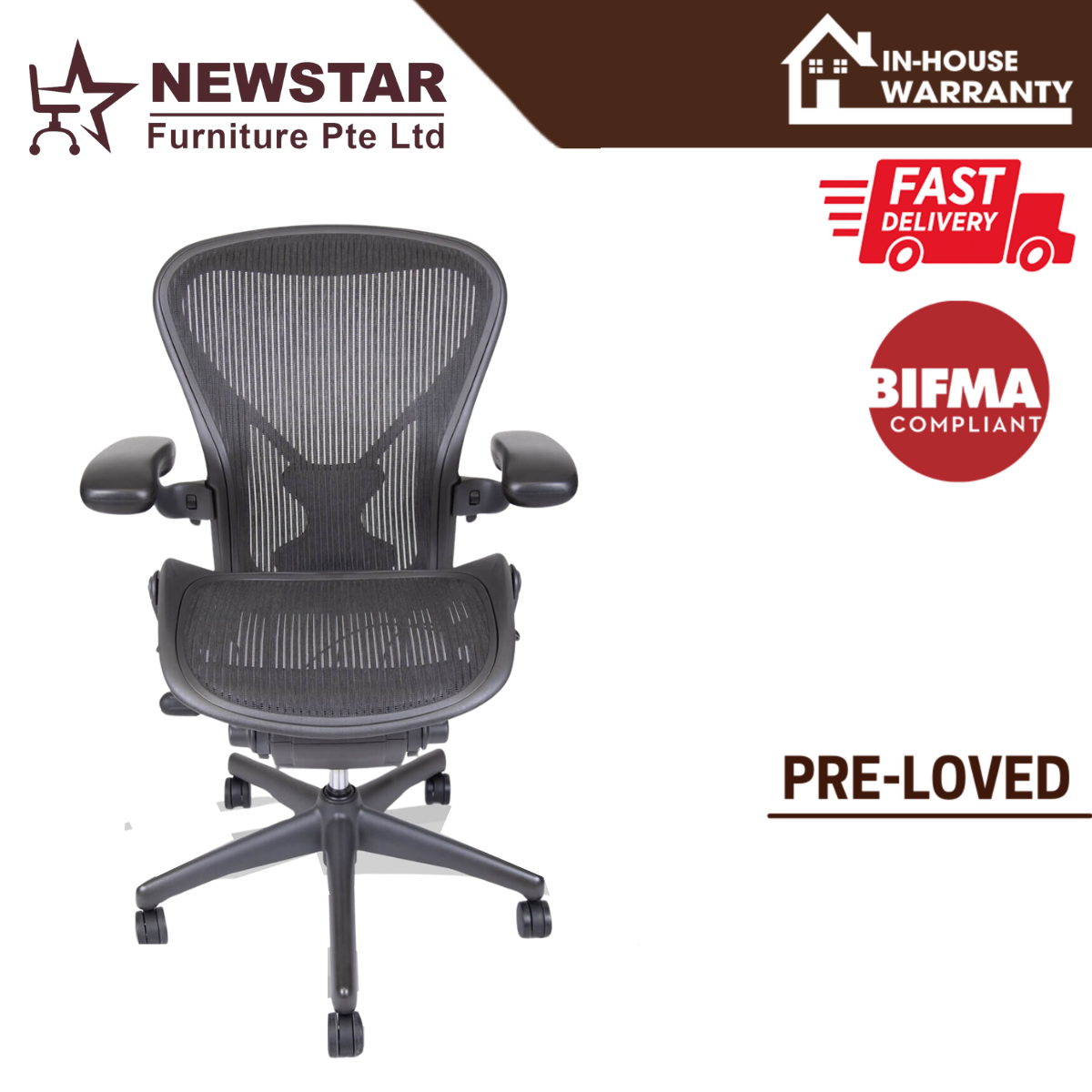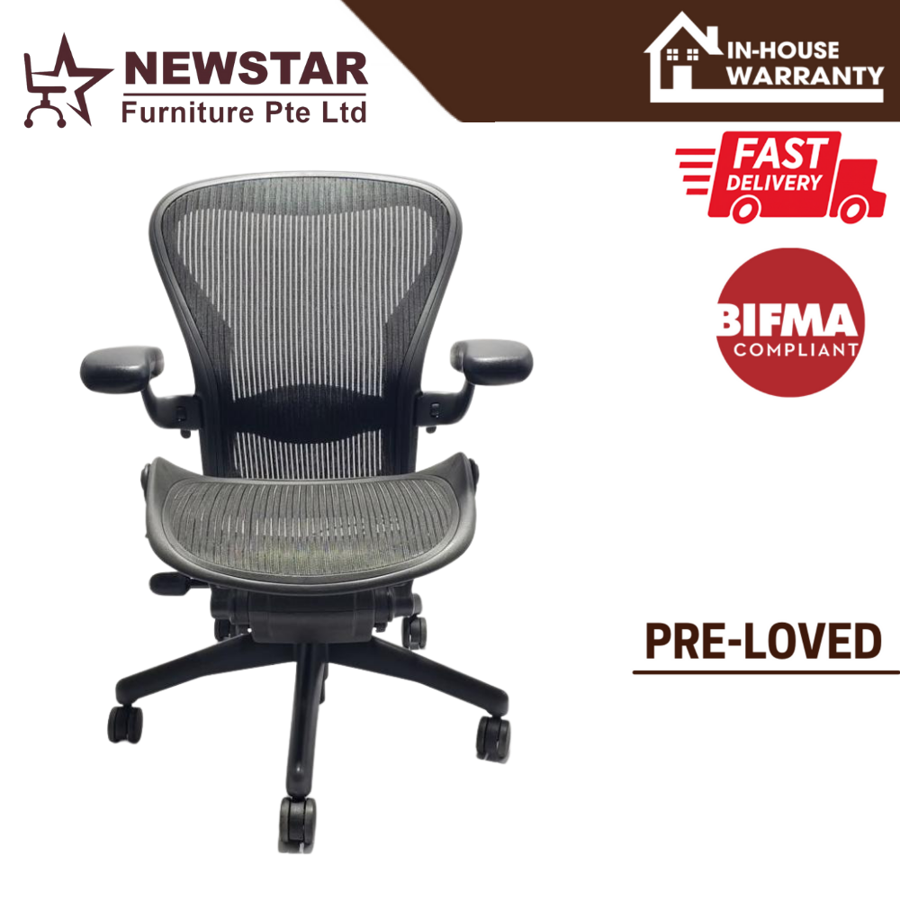 Herman Miller Aeron Chair Classic Lumbar Support Model, Size B, Office Chair - NewStar Furniture - Delivery within 24hr