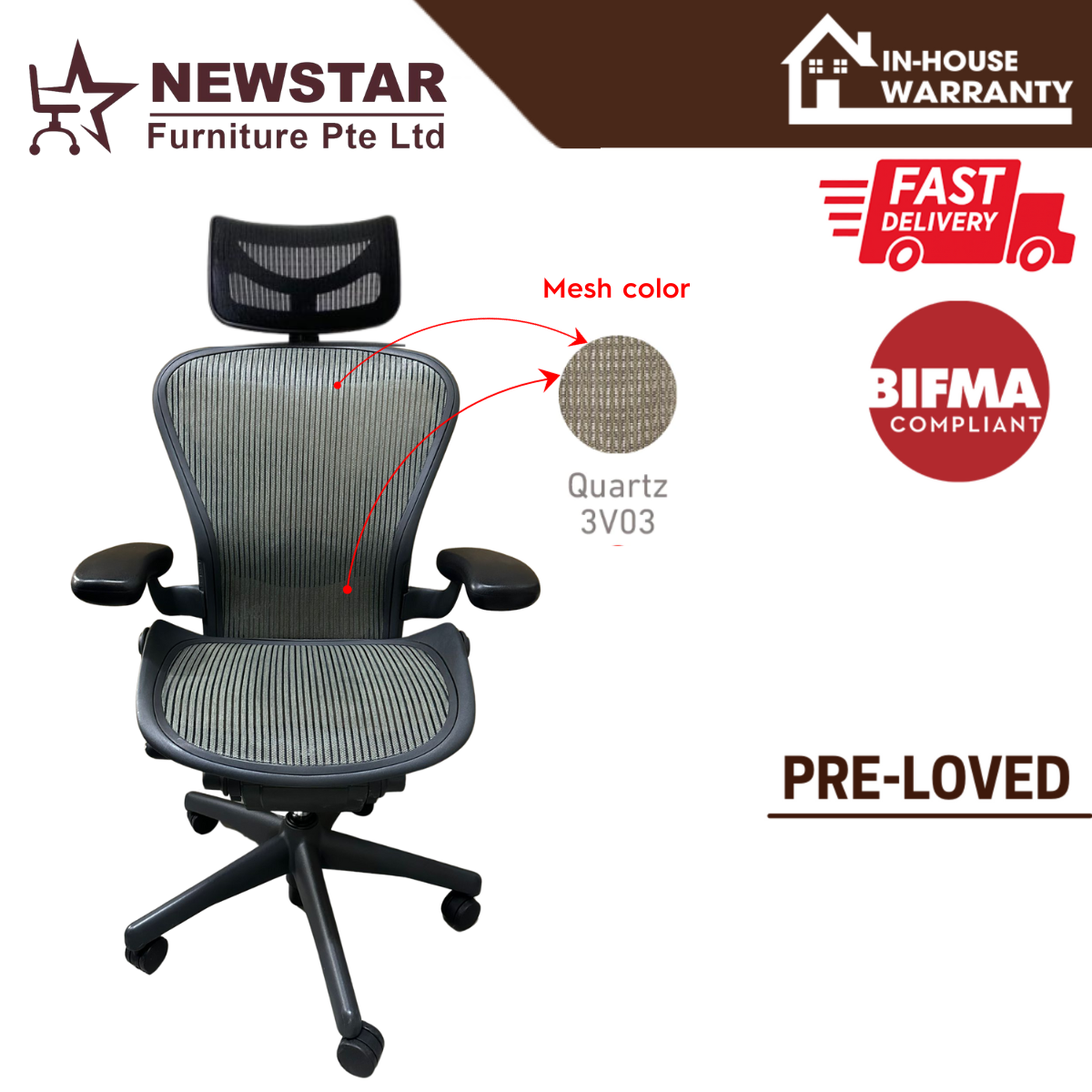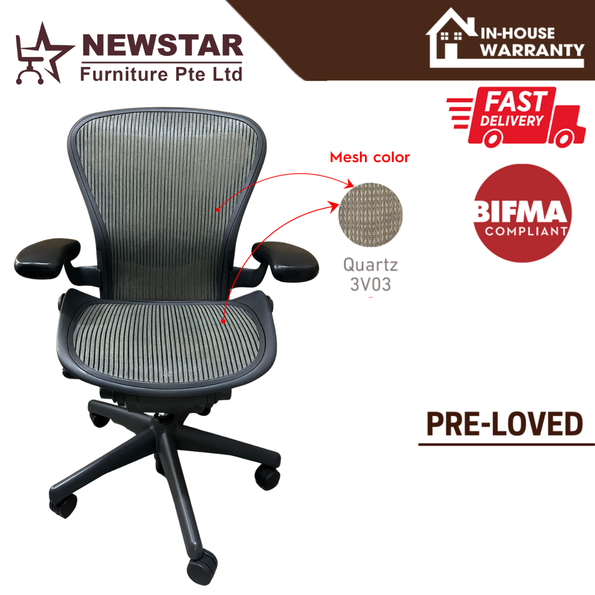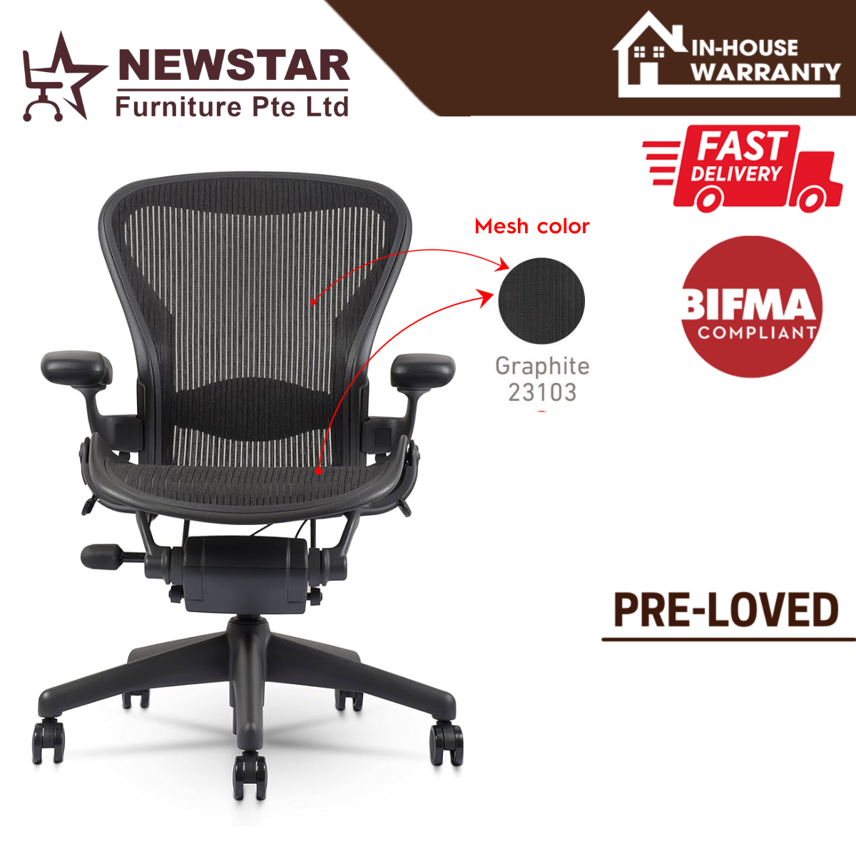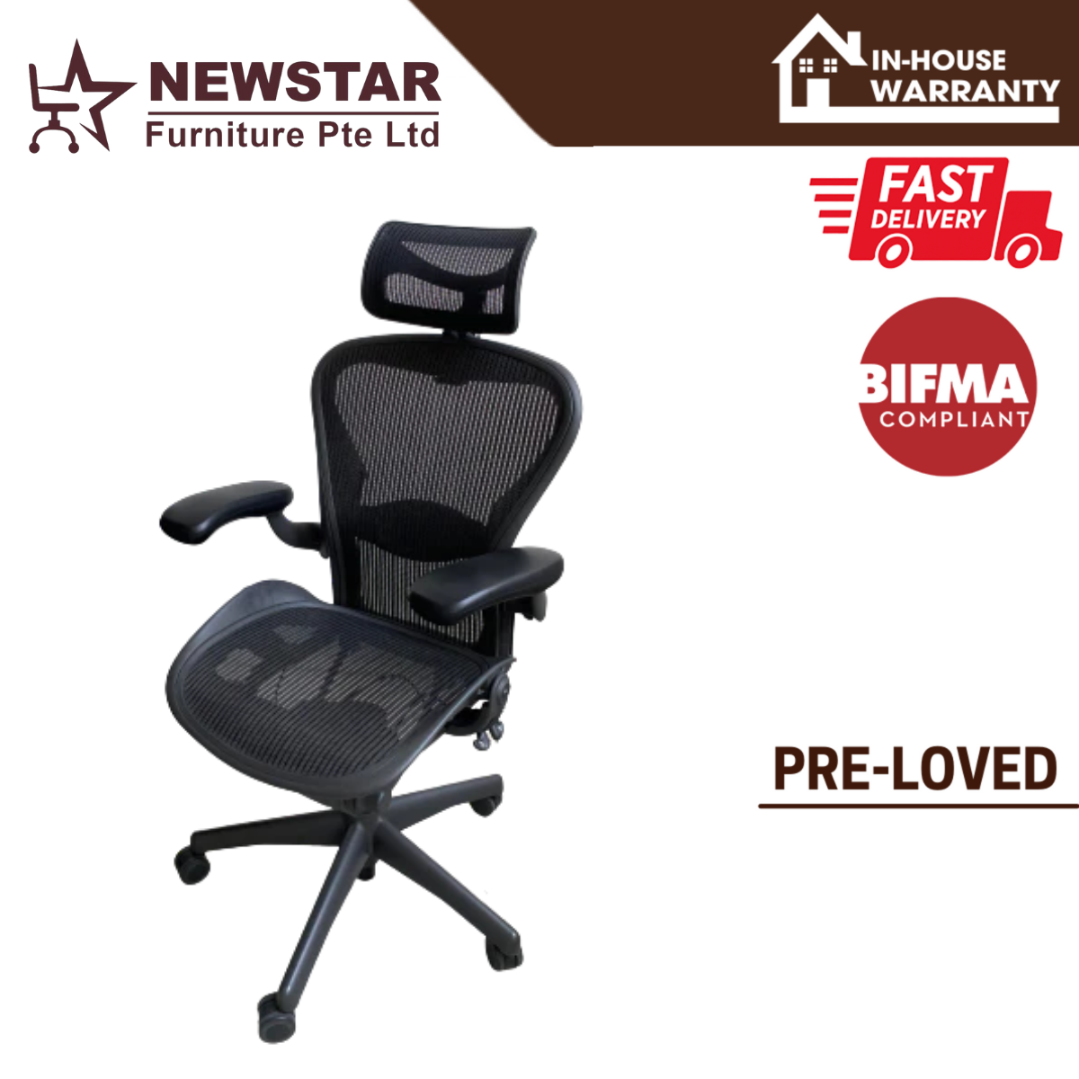 Herman Miller Aeron Chair Classic Lumbar Support Model, Size B, Office Chair - NewStar Furniture - Delivery within 24hr