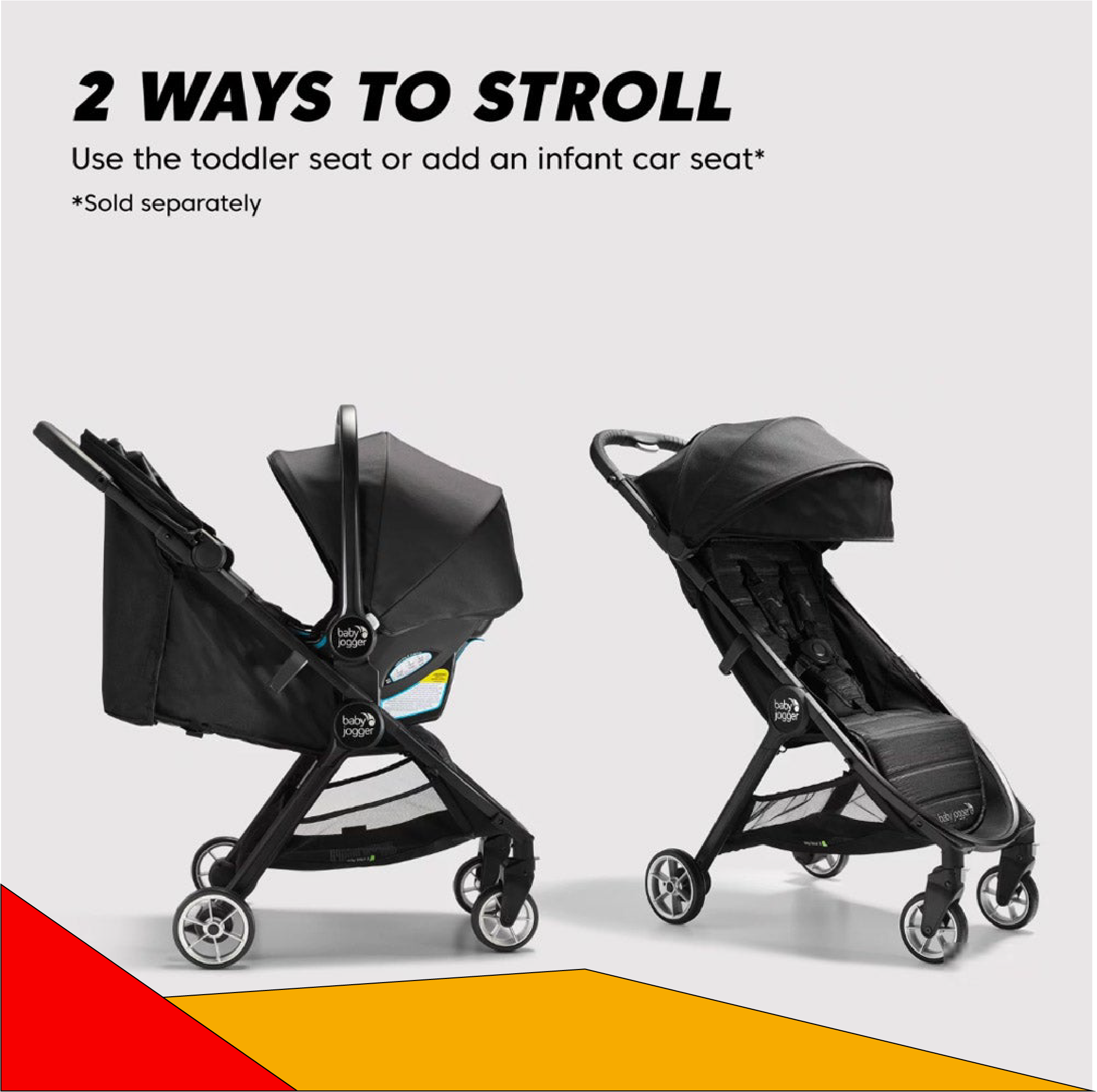 Choose from plenty of add-on accessories (sold separately) to customize the stroller for the comfort and convenience of both parent and child. With the City Tour™ 2, you're fully equipped to carry on with your day, wherever it may lead you.