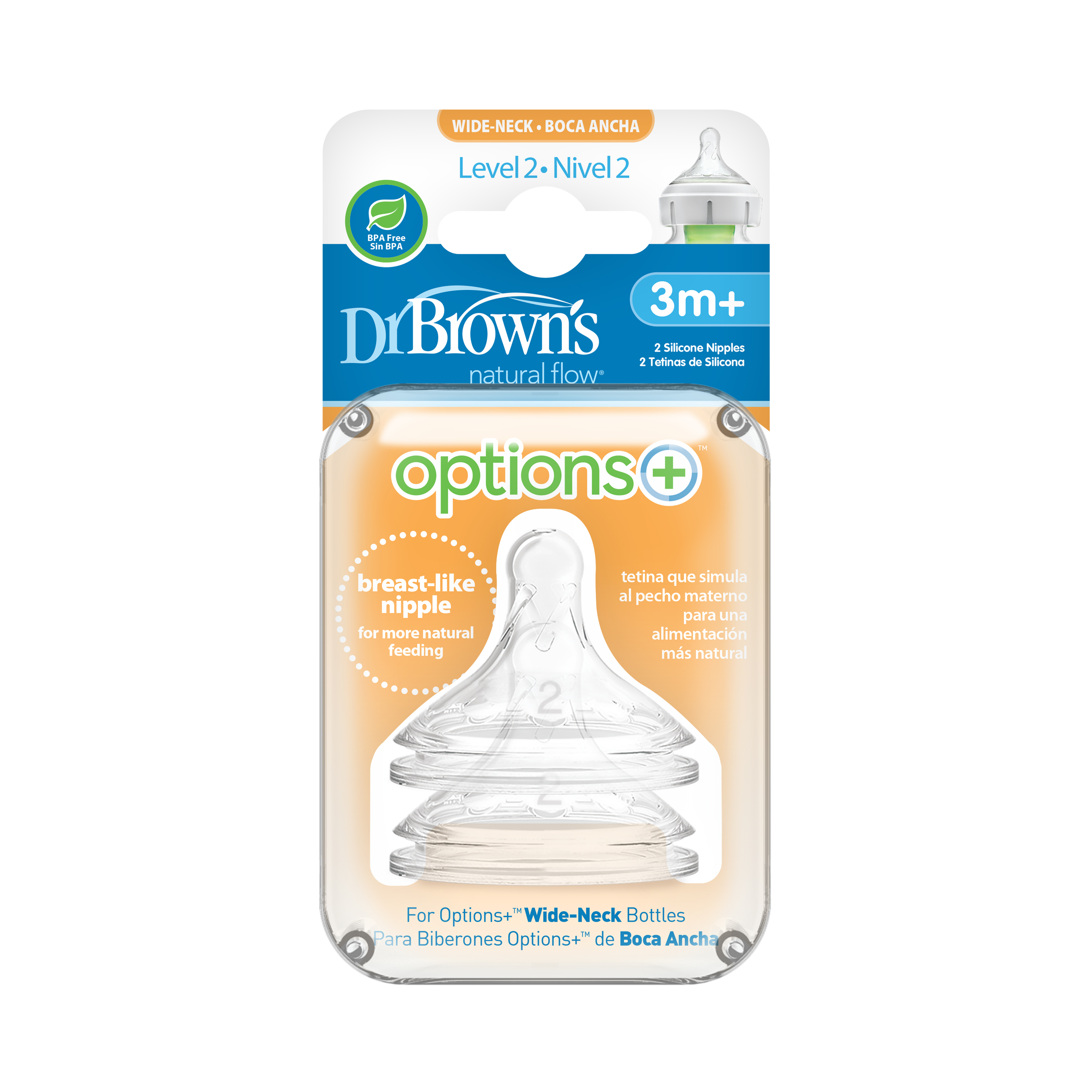 • Super-soft 100% silicone nipple fits all Dr. Brown’s® Options+™ wide-neck bottles