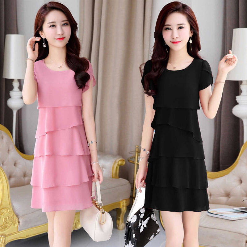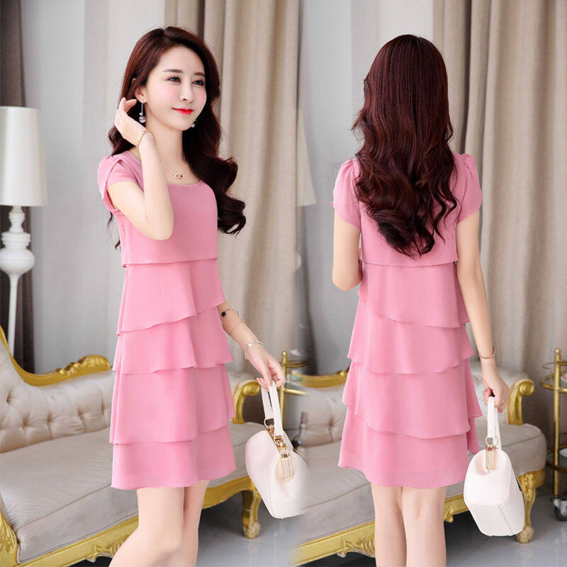 Summer Korean Style solid color Chiffon Dress for Women A-line dress