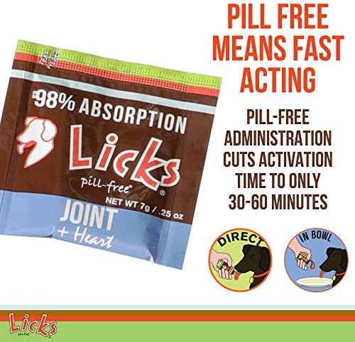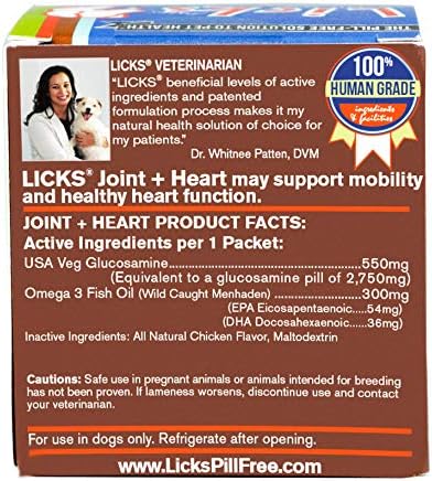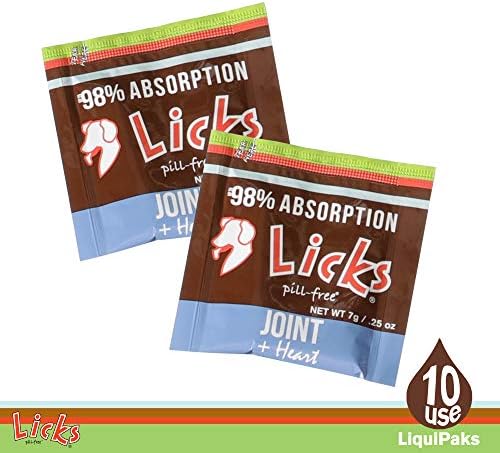 Licks Pill-Free Dog Joint and Heart - Glucosamine & Omega 3 Fish Oil Supplement for Dogs - Inflammation Supplements for Joint Support - Gel Packets - 10 Use