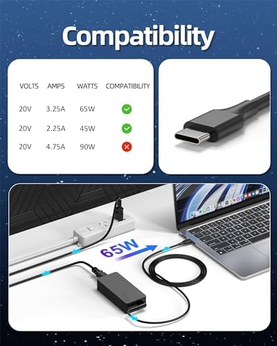 ⚙️[POWER SPECS] - Output Max: 65W ~ 20V 3.25A / 15V 3A / 9V 2A Input Volt Range: 110-240V ; Connector Size: USB Type-C Tip ,Please check before your purchase. ?[Flawless Compatibility] --- Exclusively designed to fit ALL Lenovo laptops (65W & 45W, USB C connector), e.g. ThinkPad, IdeaPad, Chromebook, Yoga, Flex, Thinkbook laptops with USB C power connector. ?[COMPATABLE MODEL] - Fit for Lenovo Chromebook 100e 300e 500e c330 s330 c630 Yoga; ThinkPad T480 T480s T580 T580s T490 T590 E480 E580 E585 E490 E590;Yoga 920 S730 C930 910-13IKB 920-13IKB C930-13IKB ?[Compatible P/N]: Fit for Lenovo ADLX65YLC2A ADLX65YCC3A ADLX65YLC3A ADLX65YDC3D ADLX65YCC3D ADLX65YLC3D ADLX65YAC3A ADLX65YCC2A ADLX65YAC2A ADLX45YDC2A ADLX45UDCU2A ADLX45YCC2A ADLX45YCC3D ADLX45YLC3D ADLX45YDC3D ?[ 1 Year Warranty ] Enjoy a worry-free 1-year warranty with free full refund or replacement (no repairs).If You Have Any Questions About The Replacement For 65W USB C Laptop Charger, You Can Click The "??? ? ????????" On Our Storefront Or In "???? ?????" Options Click The "??????? ??????".We Are Committed To Resolving Any Situation In Which Our Product Does Not Meet Your Expectations.