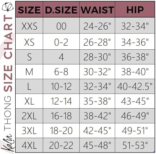 6 Pack Women’s Seamless Thongs by Kalon - Smooth, Stretchy, and comfy! Circular knit design has a seamless band (No Side Seams). Mid weight thickness - great for keeping up with your active day and holding up well in the wash. The non-cotton fabric (Nylon/Spandex) has a super soft hand feel. All Day Comfort: Stretch, bend, move, live. From sport to work from home wear. Kalon, thongs for women pack, are made to stretch through your day, all day - everyday. 4 way stretch knit means more flexibility. Extra needle knit design means they will return to their great shape after washing/drying. Finally, comfortable women’s underwear. A great thong panty for people who ‘don’t like to wear thongs’. Forget you’re wearing these undies. Tagless. Design Details: Mid rise hip. Can be stretched up to ride over the hips or worn parallel to the floor for a bit lower rise. Typically hits 3-4 fingers below the belly button on someone 5’7”. Elastic reinforced leg seams - help to keep their shape and hug the leg/body better. Jazz it up with brighter colors or keep it neutral with our skin tone colors or go classic black. Classic thong cut with back t design (so thicker/wider than a g string). Performance Quality: Made to keep up with your busy day. Whether that be a quick workout at the gym, exercise, dance class at the ballet studio, or running around town doing errands. You need panties that will keep up with you and have athletic quality features. And these seamless underwear for women by Kalon are the solution. Fully synthetic fibers make for quick drying. So whether you’re traveling or need to do a load of laundry in a hurry - this microfiber blend is for you. Women’s Sizing (No, Really!): Hip Measurements: Small: 36-38" ; Medium = 38-40"; Large = 40-42.5" ; X-Large = 43-45"; XX-Large 46-49" Check out the size chart below with more details! #27,089 in Clothing, Shoes & Jewelry ( ) #76 in