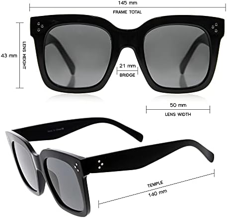 100% Protection Against UV400: No need to compromise safety for style. Our shades provide full protection from harmful UVA and UVB rays while filtering ambient light and glare for crystal clear visibility. Classic Square Vintage Look: The thick square character of this frame is a classic women’s style. Designed with every time of year in mind, wear your shades during any season. Due to their timeless design, these retro oversized sunglasses also make a great gift! Industry Standard Quality: Purchase your sunglasses with the peace of mind that they are supported by sturdy materials and reinforced with metal hinges. And don’t worry, we put just as much emphasis on the comfort of your frames too. Product Dimensions: Lens Width: 50mm -- Lens Height: 43mm -- Bridge: 21mm -- Arm Length: 140mm 90 Day Limited Warranty: zeroUV’s top priority is providing an excellent shopping experience; If you are not completely satisfied with our product or your purchase, please contact us, we'll be happy to help! #55,843 in Clothing, Shoes & Jewelry ( ) #552 in