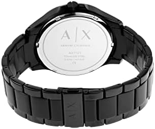 Since 1991 Armani Exchange has defined a new dress code with collections inspired by metropolitan lifestyle and music culture. Perfect for adventurous trendsetters who want unique, modern watches that are stylish in any situations Armani Exchange Hampton is perfect for those who want a bold watch that reflect their individual style. Inspired by rugged and industrial urban life, these timepieces are stylish in any part of the world. Featuring a Round Black Stainless Steel 46MM Case with Scratch Resistant Crystal a Black Dial and Three Hand movement Water resistant up to 50m: Wearable while swimming in shallow water