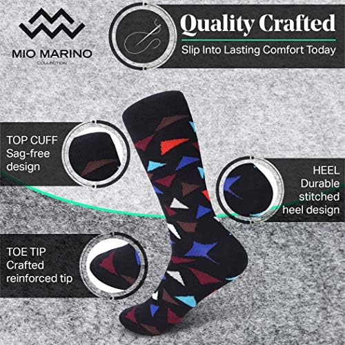 MOISTURE CONTROL - Mio Marino’s cotton socks keep your feet fresh and dry. These dress socks are super comfortable, extremely breathable. MAXIMUM DURABILITY - These men's socks are fabricated with 80% cotton 10% spandex and 10% polyester to keep elasticity and softness. HIGHLY CLASSY - Our socks for men are fashionable and colorful to match up with all your favorite clothes for every day. MACHINE WASHABLE - For a definitive long-lasting result wash colored socks with like colors and tumble dry medium. ORDER WITH GRACE - Our mission is for you to be fully satisfied with the socks you purchased, Therefore, we offer free exchange and return any time without hesitation. #19,900 in Clothing, Shoes & Jewelry ( ) #63 in