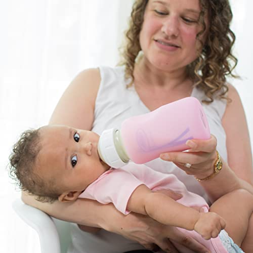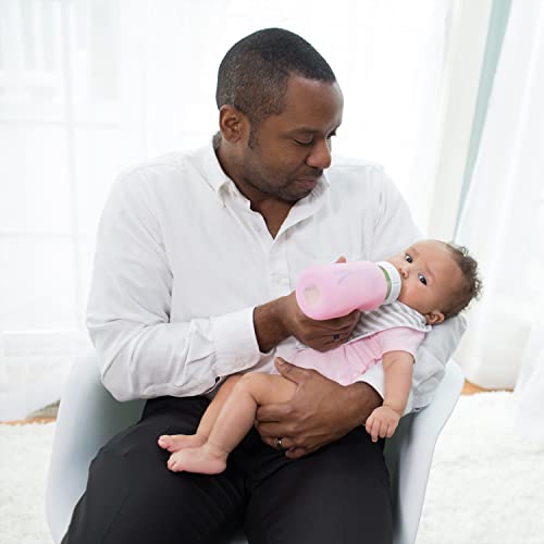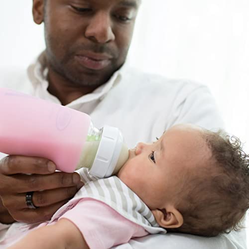 Dr. Brown's Natural Flow Options+ Glass Baby Bottle Sleeves,100% Silicone,9 oz,Wide-Neck,Pink