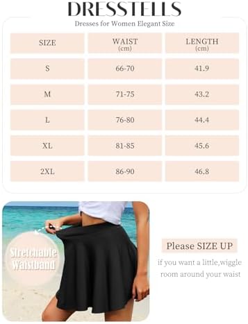 Skirt for Women - This skater skirt has aline silhouette, elastic waistband, which make it kindly for all body types. Fit and flare enough for casual wear. The versatile skirt is a trendy item in the wardrobe.Designed with a high-waisted and elasticized waistband, our skirt ensures a comfortable and secure fit, allowing you to move freely throughout the day. Mini Skater Skirts - Go beyond the age limit and release your vitality to your heart's content. Whether it's as a basis for fashionistas, party skirts for teen girls, or women's daily work needs. This short skirt will get your favor.The classic black color adds a touch of elegance to your outfit, making it a versatile wardrobe staple that can be dressed up or down with ease. 2 Length Options - Mini & Midi Length.This women pleated skirt allows you to choose the length that suits you according to the needs of different occasions. The mini skirt can visually modify your leg lines, and at the same time bring out a cute and playful temperament. The midi skirts can meet your needs for formal occasions, such as churches. Gift Ideas - Best gifts for teens and juniors girl! Sutable for school dance party, bachelor play party, homecoming and graduation! A good choice for holiday beach vacation, skating/ tennis event.Perfect for any occasion, our skirt is crafted with a pleated A-line silhouette, making it suitable for both casual and formal settings. Detail Tips - For detailed size information, please refer to the size chart. If you are between sizes, please select the bigger size so that you can have it altered! If you have any questions or concerns, our friendly team is here to assist you. #37,151 in Clothing, Shoes & Jewelry ( ) #153 in