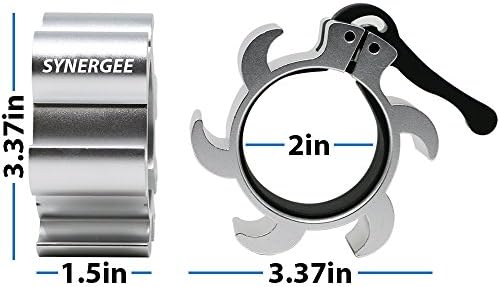 ★ STELLAR GRIP ★ - Our Barbell Collars fit securely around a standard 2” diameter Olympic barbell to provide a resilient, won’t-let-up grip to keep your bumper plates in place – no matter how many you have on the bar! ★ HIGH QUALITY CONSTRUCTION ★ – These Collars are made from durable and lightweight aluminum. Unlike plastic competitors, our collars have a rubberized lining to ensure a strong hold and protect the bar. This grip pad runs the circumference of the bar to provide even, locked-in support. ★ EFFORTLESS TO USE ★ – Our lock and release design is simple and solid. We made our collars easy to use to ensure you waste no time during your training. Quickly change the plates on your barbell to maximize gains. The collars are lightweight and transportable, so you can bring your personal, head-turning collars wherever you workout! ★ WHAT’S IN THE PACKAGE ★ – This package comes comes with (2) 2-inch in diameter, fine-looking, quick-release collars in Silver. ★ NO SWEAT ★ – Leave the sweating and swearing for your training! Buying from Synergee means quick and caring customer service! Customer Satisfaction is our Number 1 Goal!
