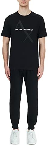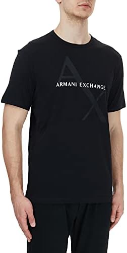 A|X ARMANI EXCHANGE mens Crew Neck Logo Tee T Shirt, Quilted Logo Black, Large US