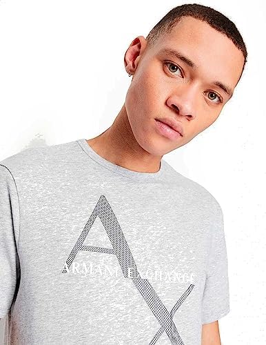 A|X ARMANI EXCHANGE mens Crew Neck Logo Tee T Shirt, Quilted Logo Heather Grey, Medium US