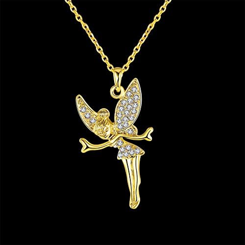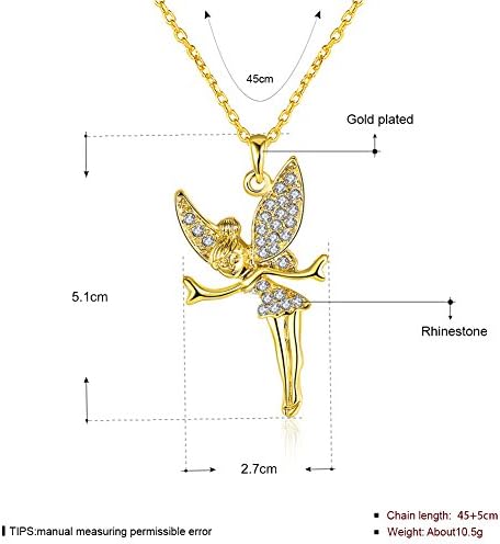 LZD Rose Gold Platinum Plated Necklace Women's Pendant Tinkerbell Wings Fairy AAA Zirconia 20 Inches 2MM Lobster Clasp B333