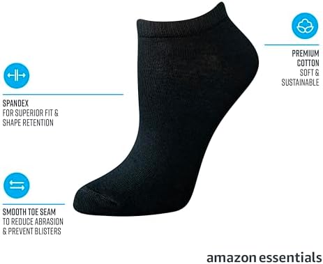 COMFORT AND FIT: These low-cut socks fit under the ankle and have a smooth toe construction that eliminates bulky seams. MATERIAL: Amazon Essentials socks are made from high-quality and durable materials. These socks are a cotton-poly blend with elastane for superior fit and shape retention. STYLE: Available in solids and patterns DETAILS: Sold 6 pairs per pack. DESIGN: These versatile socks are perfect for work, dress, casual, or everyday wear. #1,367 in Our Brands ( ) #46 in