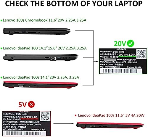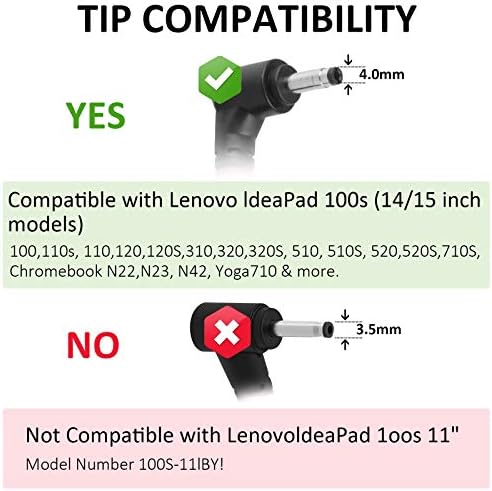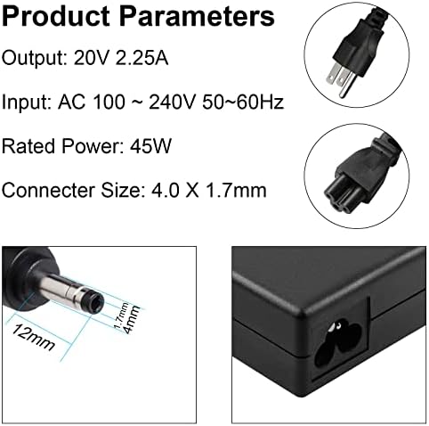 Output Max: 20V 2.25A 45W / Input Volt Range: 100-240V / Connector Size: 4.0*1.7*12mm Model: LW-065/300/150/001(Not compatible 20w 5V 4A 20w) COMPATIBILITY: Lenovo Ideapad 100, 100s (14.1" 15.6" 17" Models ONLY ) /// Lenovo Ideapad 110, 110s, 120S, 310, 320, 320S, 510, 510S, 520s, 710, 710S Plus, 720S, B50 /// Lenovo Chromebook 100s, N22, N23, N42 /// Lenovo Miix 510 /// Lenovo Flex 4 1130, 1480, 1580, 1470, 1570; Flex 5 1470, 1570 /// 80TJ 80XM 81A4 81A5 81CW 81CX 80MJ 80QN 80QQ 80R9 80S6 80SA 80SB 80SF 80SM 80ST 80T7 80TV 80TX 80U0 80U3 80UD 80UR 80V4 80V5 80V6 80VE 80VK 80WG 80XA 80XB 80XR 81C9 81CA Lenovo IdeaPad Yoga 710-11IKB, 710-11ISK, 710-14IKB, 710-14ISK, 710-15ISK; Lenovo Chromebook N22-20, N42-20 4541540; Lenovo IdeaPad 100-15IBD, 100-15IBY, 100S-14IBR, 110-15ACL, 110-15IBR, 110-15ISK, 110-17IKB, 110S-11IBR, 120S-11IAP, 120S-14IAP, 310-151SK, 310-15ABR, 310-15IKB, 310-15ISK, 320-17IKB, 510-15IKB, 510-15ISK, 510S-14ISK, 710S-13ISK; P/N 5A10H42919, 5A10H42921, 5A10H42923, 5A10H43625, 5A10H43630, 5A10H43632, ADP-45DW BA C, ADL45WCC, GX20K11838, PA-1450-55LL, PA-1450-55LN, PA-1450-55LR PERFORMANCE, SAFETY, RELIABILITY - All of our product lines are put through rigorous quality control procedures to ensure safe, reliable operation for years to come. We guarantee our products will charge your device as efficiently as the original charger, or any other replacement. 24 x 7 Email Support, 12 Months warranty, 30 Days Money Back Guarantee.
