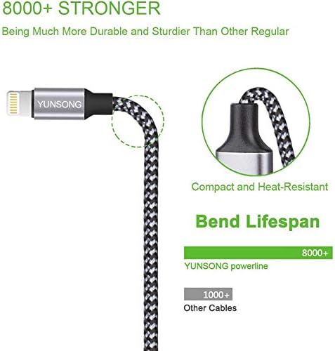 STRONG DESIGN: Covered with braided-nylon jacket. Polished aluminum alloy housing not only pairs perfectly with your iPhone iPad, but also protects against physical stresses. PERFECT LENGTHS: Perfect 6FT extra long phone charger cable free up your charging time, no more being stuck to wall socket, ideal for using at home, in car and office. HIGH-SPEED CHARGING: Ensure a maximum charging speed up to 2.1A, charge faster than most standard cables and work better for speed. HIGH QUALITY: Tested to withstand 8000+ bend cycles, this cable is highly resistant to splitting and breakage. more strong than standard Phone charger cord. COMPATIBLE WITH:iPhone 14, 14 Plus, 14 Pro, 14 Pro Max, 13, 13 Mini, 13 Pro, 13 Pro Max, 12, 12 Mini, 12 Pro, 12 Pro Max, 11, 11 Pro, 11 Pro Max, SE, X, XS, XR, XS Max, 8, 8 Plus, 7, 7 plus, 6s plus, 6s, 6 Plus, 6, 5c, 5s, SE, 5, iPad, Air, Pro, Mini, iPod. If you have any questions, don't hesitate to contact us. our service team will reply you with satisfied solution within 24hours.