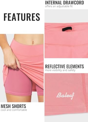 Moisture Wicking - These tennis skirts wick away sweat quickly to keep you dry and cool. Secure Built-In Shorts - Skirt outer and shorts inner, you can enjoy your sports without worries. Double layer triangle shaped gusset avoids riding up & pinching, enhances your range of motion. Wide Elastic Waistband - These golf skirts with internal drawcord are adjustable and comfortable to wear. The reflective details increase visibility in low-light conditions. Headphone Cable Hole & 3 Pockets - Convenient design for headphones, 1 hidden pocket on the waistband and 2 pockets on each leg of compressive mesh short stow your essentials like 4.7" phones, keys, etc. Multiple Occasions - Crafted with quick-dry fabric, Baleaf golf skorts with pockets are perfect for golf, tennis, running, workout or daily wear. #27,379 in Clothing, Shoes & Jewelry ( ) #69 in