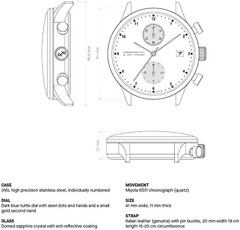 Exquisite Craftsmanship: Elevate your style with our 1815 Chronograph Mens Watches These stainless steel watches for men are meticulously crafted using top-tier components like a 316L High Precision Stainless Steel 41 mm Case and a Miyota 6S11 Quartz Movement Timeless Elegance: Our chronograph watches for men seamlessly blend minimalistic aesthetics with a touch of sophistication The stainless steel watch has a Leather Strap and the Round Sapphire Crystal Glass with Anti-reflective Coating Waterproof Reliability: Our dress watches for men are not just for show it's a versatile companion suitable for rain and showers Tested waterproof for 5 ATM 165 feet or 50 meters you can trust these casual watches for men Elegant Presentation: Every chronograph luxury watch men arrives in our exclusive and stylish wooden box The packing of these mens dress watches not only enhances the gifting experience but also serves as a secure storage solution Peace of Mind Warranty: When you invest in our About Vintage watches men you're investing in quality That's why we offer a generous 2-year warranty on defects giving you confidence in your purchase of quartz watches for men #871,975 in Clothing, Shoes & Jewelry ( ) #5,204 in