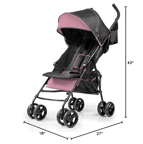 Summer Infant 3Dmini Convenience Stroller, Pink – Lightweight Stroller with Compact Fold, Multi-Position Recline, Canopy with Pop Out Sun Visor and More – Umbrella Stroller for Travel