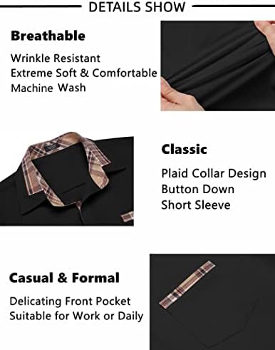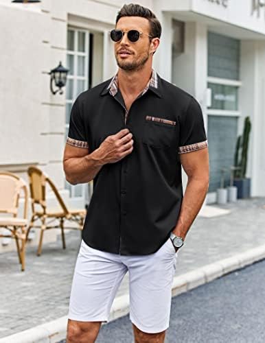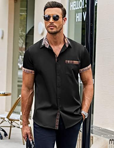 COOFANDY Mens Short Sleeve Dress Shirts Casual Wrinkle Free Shirt Plaid Collar Summer Button Down Shirts