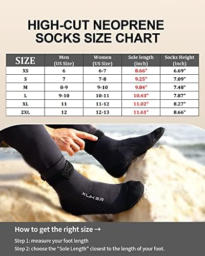 【Cool Water Socks】These 3mm neoprene socks for water sports and beach activities are cool, the ergonomic design makes no wrinkle on feet back, it's very comfortable to wear them to walk on the beach or in the water without shoes. Please check our size chart for the correct fit, turn outside in to remove the socks, not pulling directly. 【Keep Your Feet Warm and Safe】These beach socks provide great insulation for cooler waters and great proctection for your soles, keep your feet warm and protect your feet from injury while doing water sports and beach activities. 【Premium Quality】These neoprene socks are made from ultra stretchy premium quality neoprene with a tougher than standard anti-slip sole expecting them to feel both flexible and fitting for your feet when you're doing water sports and beach activities! 【Not 100% Water Proof】Glued blind stitched seams and smooth skin openings minimize water coming in, keep feet warm; Bottoms are designed with coating process, much more abrasion-resistant, and durable for long lasting use, you can walk on the beach or in the water freely with these neoprene socks. 【Ideal for Various Sports】NeopSkin Neoprene Socks Fits Multiple Water Sports - lake pool ocean swimming, snorkeling, jetskiing, kayaking, paddling, boarding, diving, surfing, or just hanging out with your feet in the water; Beach Activities - sand soccer, beach volleyball, beach combing; Exercises - yoga, pilates. #2,009 in Sports & Outdoors ( ) #2 in