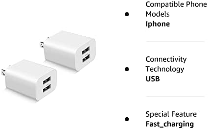 【Universal Compatibility】: USB Charger Box compatible with iPhone 15/14/13/12/XS/iPhone Max/iPhone XR/iPhone X/iPhone 8 Plus/iPhone 8/iPhone 7 Plus/iPhone 7/iPhone 6s Plus/iPhone 6s/iPhone 6 Plus/iPhone 6/iPhone 5s/iPhone 5c/iPhone 5/iPad Air/Air 2/iPad mini/mini 2/mini 4/iPad 4th gen/Samsung Galaxy/S9/S8/S7/S6 LG and More 【Convenient to use】: Home charger adapter allows charging at home or in the office via USB cable connection. Simply plug in the USB cable, and plug the adapter in to the wall. Compact, lightweight, portable, stylish, easy to store.And 2-Pack chargers you can share them with your lover, family or friends. 【Safe&Quality Reliable】: USB Wall Charger has protection system against over charging,over currents,and over heating. the Charger heads will automatically stop charging when power is full,which can maximumly protect your device 【USB Wall Charger】: Output: DC 5V 2.1Amp; Input: AC 100V - 240V (U.S. & World Standard).Best replacement for original charger, work with any device with a USB port. 【What You Ge】: 2x Usb Wall Charger. 12-month warranty and friendly customer services, you can feel free to contact us if you have any question, we will contact you in 24h, and satisfy you.