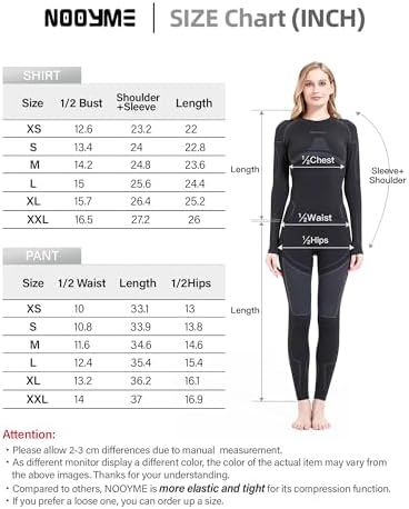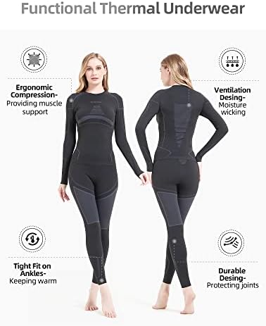 Preserve Heat Effectively: Designed with ultra-soft lining, the thermal underwear for women keeps the cold air out and preserve heat effectively in extreme cold weather.Also, the intricate and professional seaming reduces heat dispeating. Base layer women keep you in cold weather warm during yoga, skiing, running, jogging, hiking, riding, walking the dog. Multi-functional Advanced Material: Superior to other fabrics, ourlong johns for women performs well on moisture wicking, heat retention and comfort. The premium polyester takes in three times water than other fabrics .Consequently it gets rid of moisture faster,and wick away moisture to keep you cozy with no sticky or clammy feeling. 4-Way Stretch Compression Suits:The non abrasion fabric material with excellent elasticity and durability makes women's thermal underwears high elastic, with a added range of motion and offers maximum freedom and support to your body. Besides, designed to increase blood flow and amount of oxygen in the blood,the thermal underwear for women improves blood circulation, protects you from muscle injury and fits for sport activities. Superior Wicking Capability: Equipped with premium polyester, The base layer women is highly absorbent, 40%+ more absorbent than other fabrics. Filled with micro gaps and holes, the material allows for better moisture absorption and ventilation than others. It wicks moisture away from the skin much faster and keeping you dry and comfortable easier all day. For Any Occasions : This long johns for women is the ideal option during various indoor activities and outdoor excursion. It fits for hiking base layer women, thermal underwear for women skiing, thermal underwear for jogging, thermal underwear for riding etc. PLEASE REFER TO IMAGE of ACTUAL MEASUREMENT on Left Side in advance of your purchase. If you prefer a loose one, you can order up a size. #69,289 in Clothing, Shoes & Jewelry ( ) #11 in