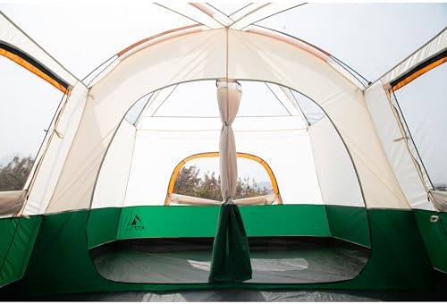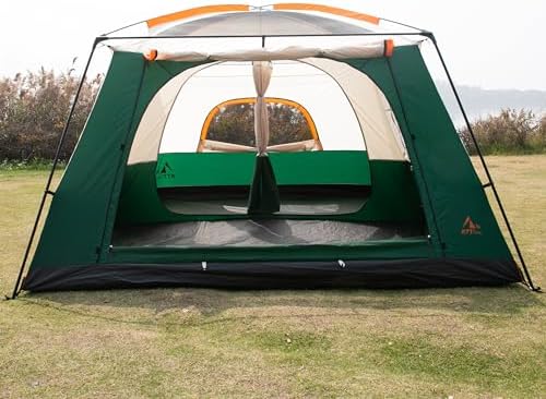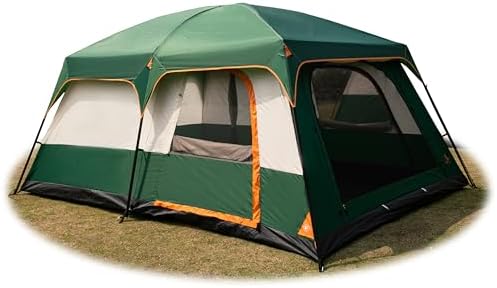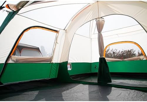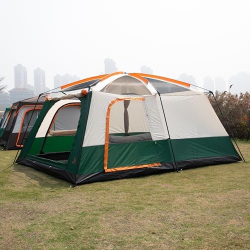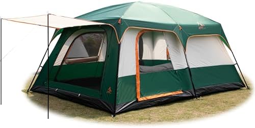 KTT Extra Large Tent 10-12 Person(B),Family Cabin Tents,2 Rooms,3 Doors and 3 Windows with Mesh,Straight Wall,Waterproof,Double Layer,Big Tent for Outdoor,Picnic,Camping,Family Gathering