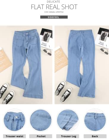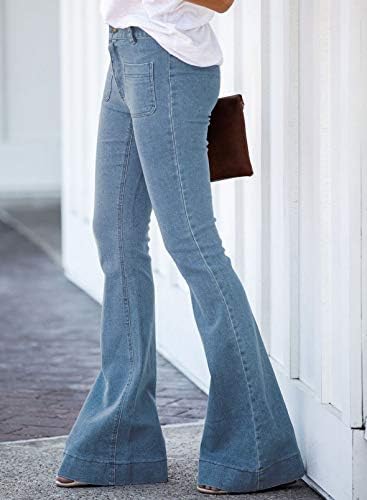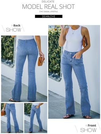 The bells bottom flare denim jeans pants feature a high waist, which can elongate the legs and create a flattering silhouette. different design and colors to choose. Denim flared pants can be worn in a variety of scenes, from casual to dressy. For a casual daytime look, they can be paired with a graphic tee or a loose-fitting blouse and some sandals or sneakers. This look is perfect for running errands, going to brunch with friends, or even a laid-back office environment. For a dressier occasion, denim flared pants can be dressed up with a blouse or a blazer, and some high heels or ankle boots. This look is great for a night out on the town, a date night, or even a semi-formal event. Denim flared pants can also be styled for a retro look with a cropped top and some platform shoes or chunky heels. This look is perfect for a music festival, a summer concert, or any other occasion where you want to make a statement.Overall, denim flared pants are versatile and can be worn in many different scenes, making them a great addition to any wardrobe. Wide flared and frayed hem to complete tretchy and fitted feel. Soft and stretchy denim fabric for the utmost wearability! It is suits for most occasions. NOTE please:These jeans are flared with a slightly longer hem, perfect for showcasing your long legs and creating a beautiful body shape. To complete the look, we suggest pairing them with high heels. #37,321 in Clothing, Shoes & Jewelry ( ) #274 in