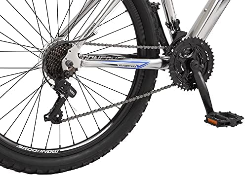 Hardtail MTB with a lightweight 6061 aluminum frame and 24-inch wheels is perfect for all terrain adventures, best fit to riders 4'8" to 5'6" tall Element suspension fork improves performance and control while providing a smoother ride 21-speed twist shifters and rear derailleur provide effortless gear changes when riding up an incline or speeding down a decline Reliably stop with confidence using the front and rear alloy v-brakes, delivering dependable stopping power Experience lightweight durability with the double wall alloy rims