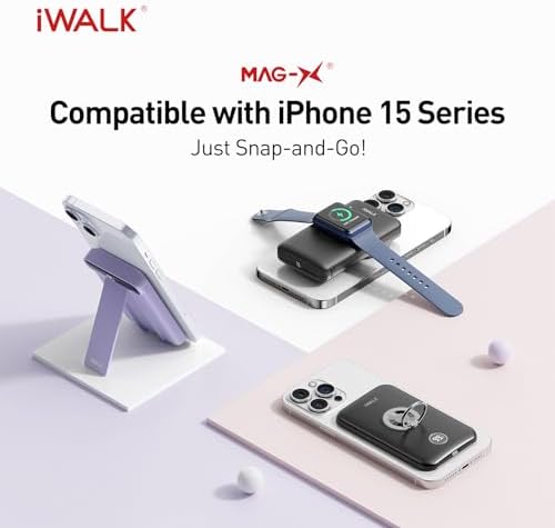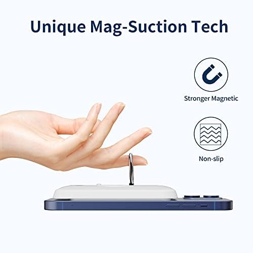 Mag-Safe Wireless Charger:Specifically for iPhone 15/14/13/12 wireless charging with unique Mag-Suction technology (stronger magnetic and nano adsorption) support iPhone 15/14/13/12 without case or cover with mag-safe case. Fast Wireless Charging: Wireless portable charger support 7.5W iPhone 15/14/13/12 fast wireless charging.Also supports USB-C 18W PD input and output. Smart LED Indicators: The LED power indicators shows the remaining battery capacity. Finger Ring:Wireless power bank built in special finger ring holder designed to hold your iPhone 15/14/13/12 in place and also makes it be carried conveniently while talking on your iphone. What you get:6000mah Wireless Power Bank,USB-A to USB-C Cable x1, User Manual x1