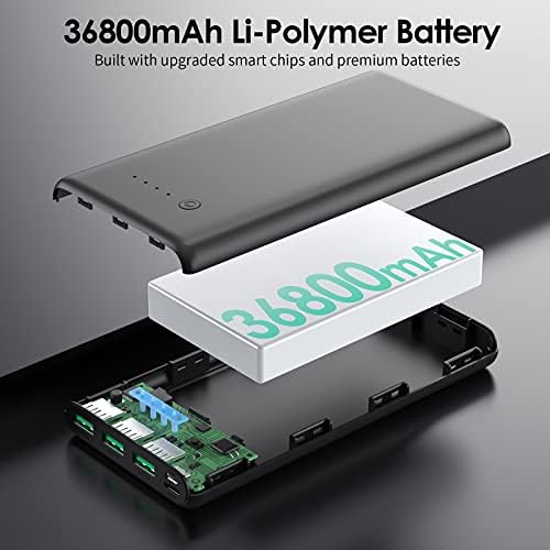 【Ultra-high Capacity 36800mAh】36800mAh power bank with ultra-high capacity can Keep Your phone running all day. Without extra worry about low phone battery. Ideal to take it for play game, trip and listen music. 【4 outputs & 2 Input】This power bank built-in 4 outputs (3A USB C+ 3 USB ) and 2 inputs ( 3A USB C + Micro USB ) ; you can charge 4 devices simultaneously. Suitable for business, travel, going out. 【Super Safety - Intelligent Controlling IC】 Newest design upgraded version 36800mAh power bank with safety polymer battery, built-in intelligent chip can protect your devices against overcharge, over discharge, excessive currents, short circuits or overheating, provided stable charging. 【Universal Compatibility & Smart LED Indicator】Pxwaxpy Portable Charger is widely compatible with iPhone, Samsung Galaxy, Pixel smartphone and smaller devices such as bluetooth earbuds, fitness tracker and so on. 4 blue LED indicators show the power left as 25%-50%-75%-100%, no more guessing whether need to charge it or not. 【What You Get】1 x Pxwaxpy 36800mAh portable charger, 1 x Micro USB Cable ,1 x User manual and 3 Years warranty lifetime technical support.If you have any question, please feel free to contact us.