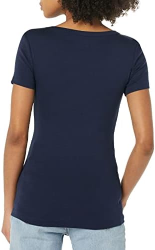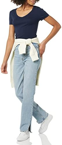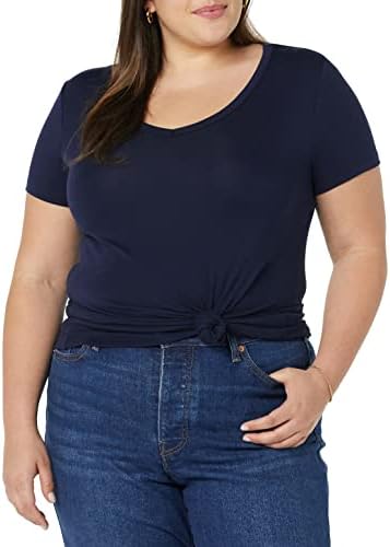 SLIM FIT: Close fit that hugs the body. COTTON MODAL MICRO RIB: Super soft cotton modal micro rib jersey with added stretch offers all-day ease and comfort, while retaining its shape for the perfect slim fit. Fabric you want to live in year round. ESSENTIAL T-SHIRT: This versatile t-shirt is a classic wardrobe essential, perfect layered under your favorite jacket or cardigan or wear on its own styled back to Amazon Essentials Women's Denim and Slip-on Sneakers. DETAILS: Features a classic v-neck and short sleeves for casual and effortless style. #299 in Our Brands ( ) #35 in