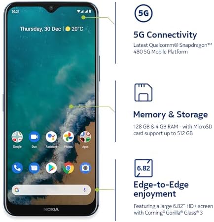 This device works with all GSM carriers including, but not limited to: AT&T, Boost, Cricket, H2O Wireless, Metro, Net10, Simple Mobile, T-Mobile, Tracfone. This product will not work with Verizon. Please confirm compatibility and network availability with your preferred carrier. 5G support not offered with all carriers. 5G speed with Qualcomm Snapdragon 480 5G Mobile Platform. 48MP camera setup with AI and video selfie stabilization 2 day battery life with 18W fast charging support Android 11; upgradeable to Android 13 with monthly security updates