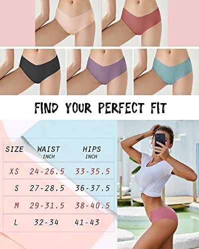 Seamless Underwear: [Waist Measurements]: XS = 24 - 26.5"; S = 27 - 28.5"; M = 29-31.5" ; L= 32-34" . [Hip Measurements]: XS= 33-35.5"; S = 36-37.5" ; M= 38-40.5" ; L = 41-43". Womens No Show Bikini Panties: This ROSYCORAL underwear provides a seamless and no show no ride up look, which can take you through your workout and into the rest of the day comfortably, and our super soft and breathable material that stay dry and in place, you will forget they’re even there. Laser Cut Cheeky: Made with super soft smooth fabrics (90% Nylon and 10% Spandex) and created with a four-way stretch that moves with you,plus flatters your curves. V Cut Hipster for Women: These 5 pack low rise and no show panties created with a V cut and one piece design that sit below your belly without digging into your skin. It’s great for you to wear under legging or dress,or even when you are pregnant. Womens Underwear: ROSYCORAL measurement results might different from amazon's. Please kindly refer to the size chart showed on the product image. Just choose the most appropriate size to get more comfortable style. #35,874 in Clothing, Shoes & Jewelry ( ) #114 in