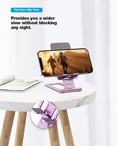 MEISO Cell Phone Stand, Fully Foldable Phone Holder for Desk, Desktop Mobile Phone Cradle Dock Compatible with iPhone, Samsung Galaxy, iPad Mini, Tablets Up to 10” (Lilac Purple)
